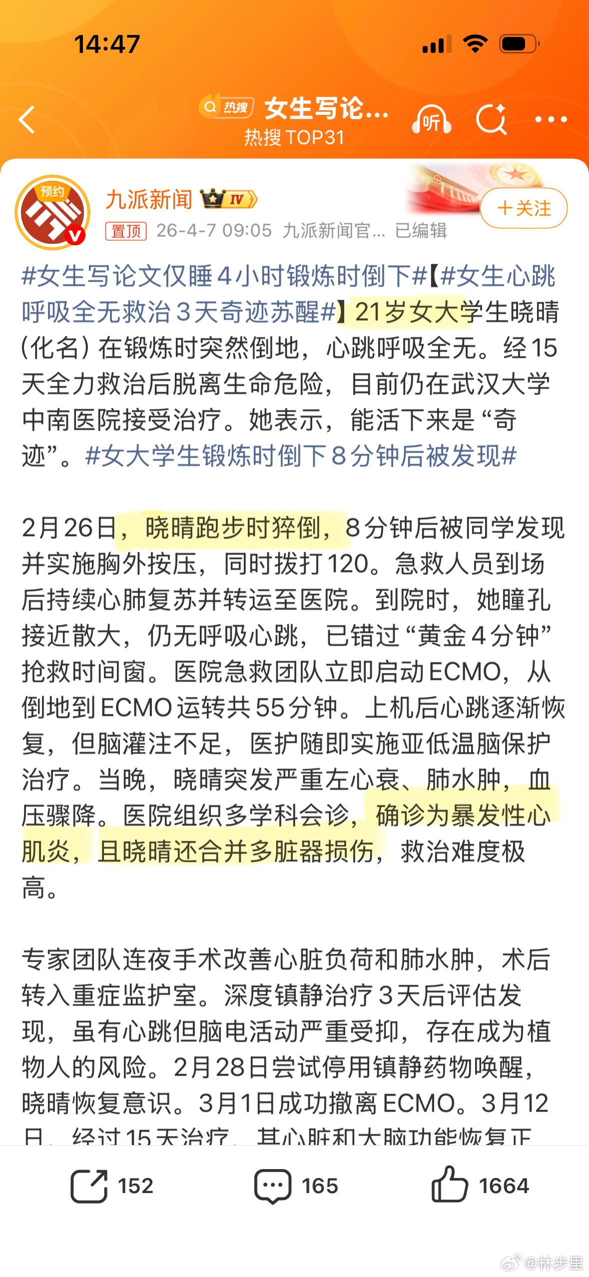 女生写论文仅睡4小时锻炼时倒下流感后熬夜运动,是怎么敢的?