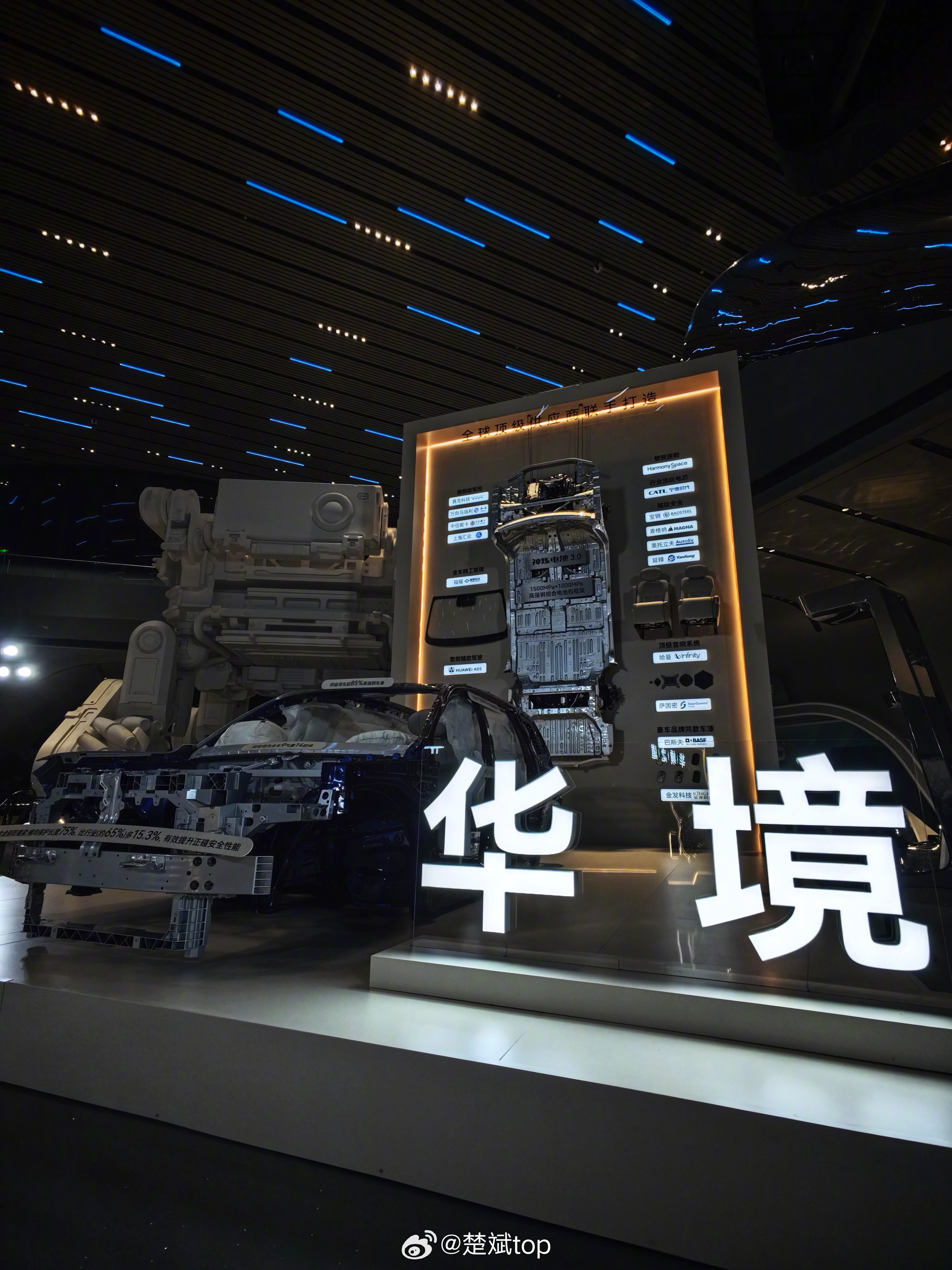 看到了华境S实车,这车比照片看着体量更大,还有全球顶级供应商,一体式热成型前地板