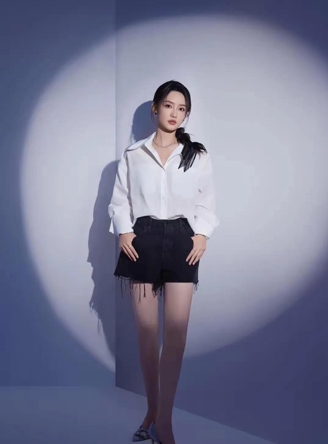李沁这腿,谁看了不迷糊! 白衬衫+黑短裤,简约又高级,腿长直接两米八! 这才是穿搭的天花板,又美又飒! 李沁 李沁腿 穿搭分享 白衬衫yyds