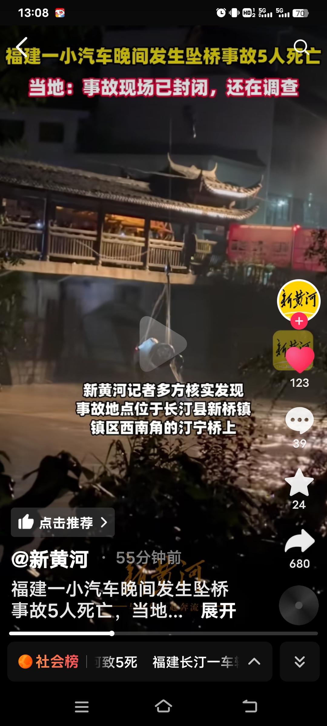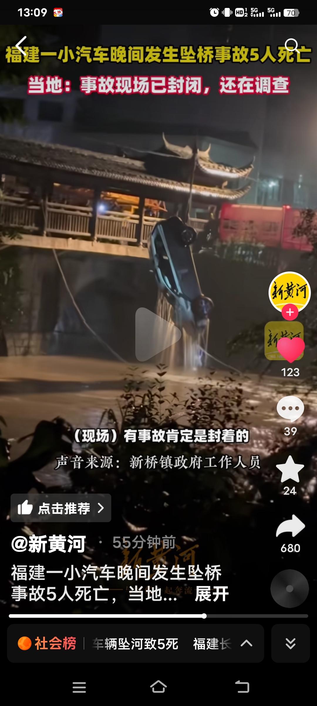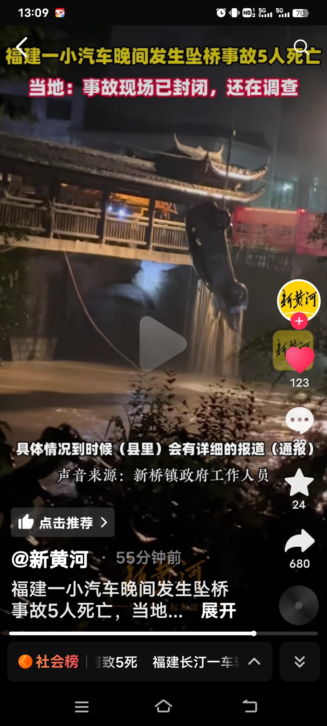 4月6日晚,福建省长汀县发生一起车辆坠桥事故,一辆小型的汽车连人带车从桥上坠入河中,5条鲜活的生命就此消逝。不知是何原因致使汽车坠桥,是司机操作失误,还是车辆本身存在故障,亦或是桥梁存有安全隐患。 从视频可见,吊车正在打捞。事故发生后,当地随即展开调查。每一起事故的背后,皆为一个个破碎的家庭。这也给大家敲响了警钟,开车上路务必注意安全,定期检查车辆状况,严格遵守交通规则。 生命仅有一次!但愿日后此类悲剧能少一些,大家都能平平安安。