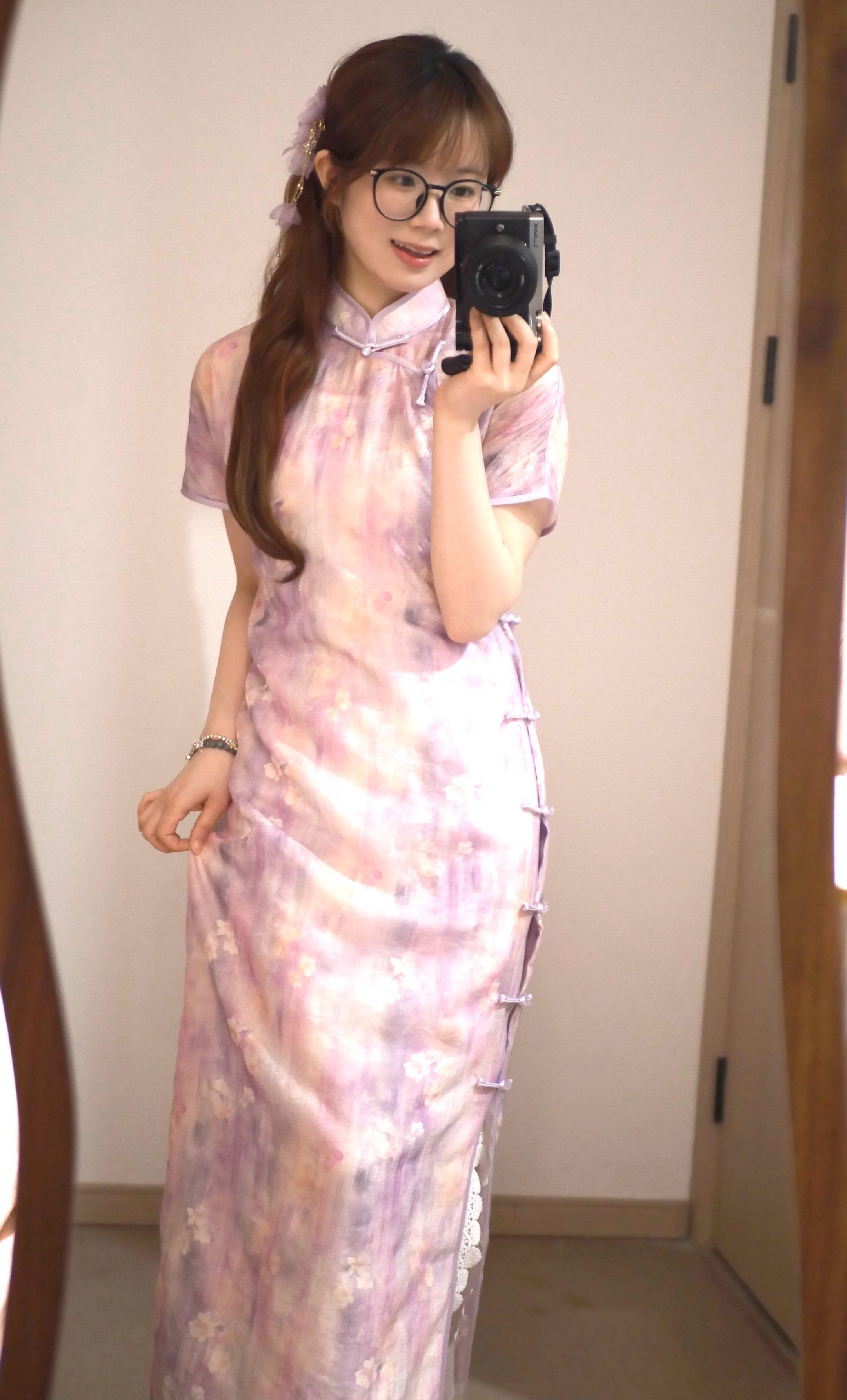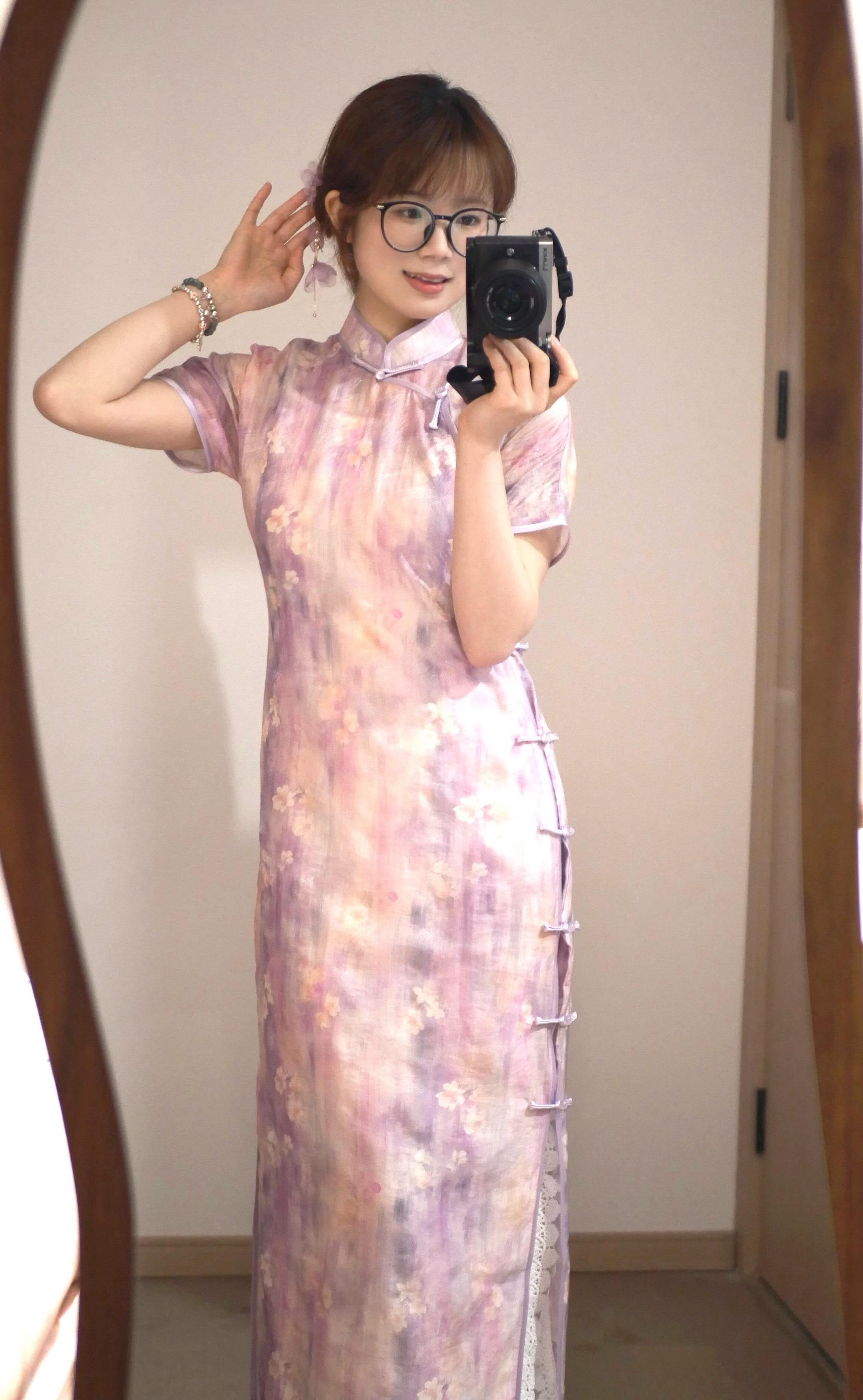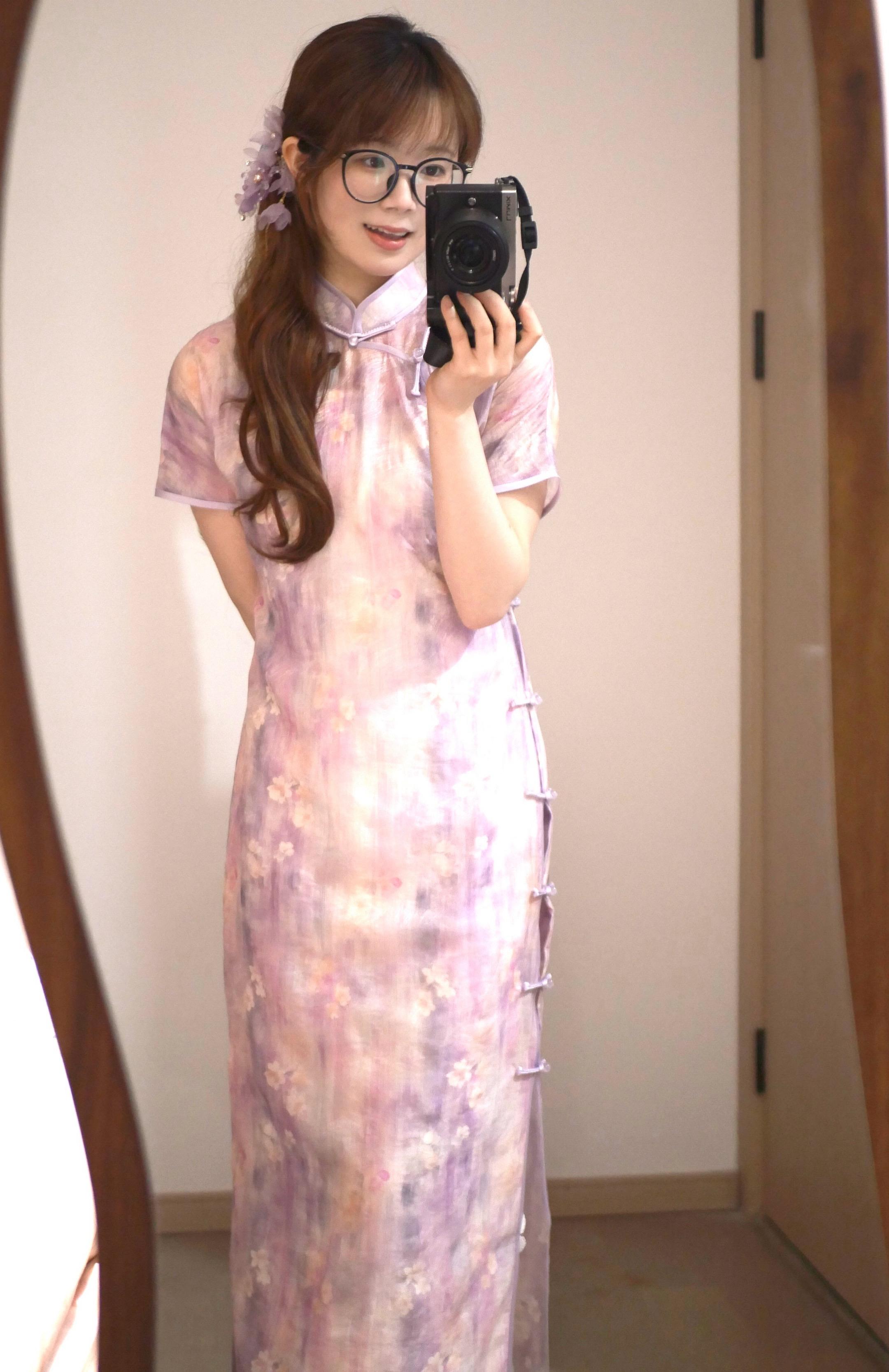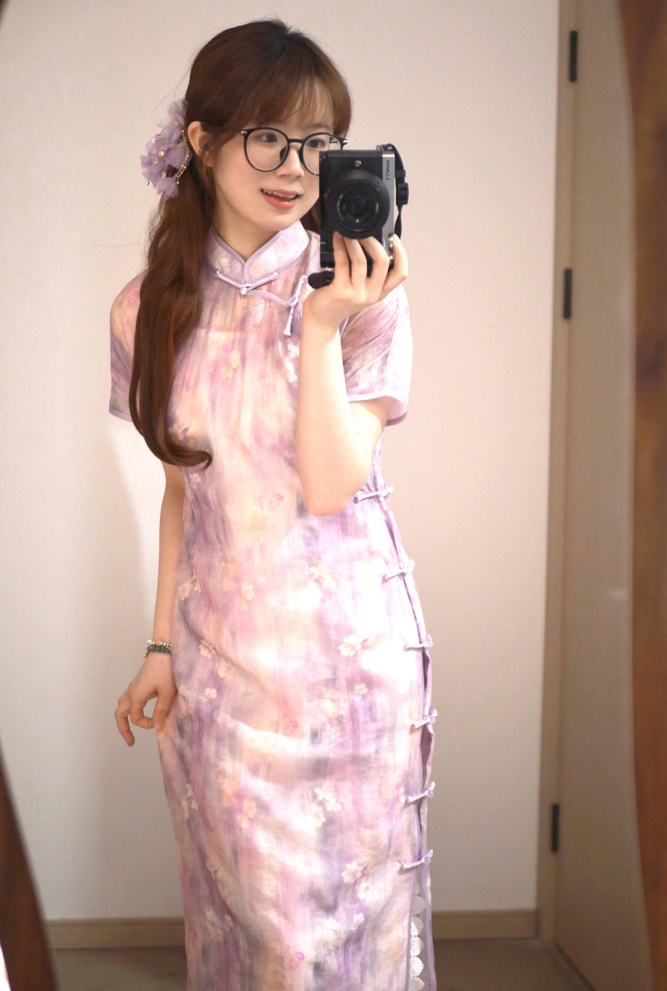 不愧是古法旗袍^^虽然不那么修身,但是一上身就给人一种古典优雅的感觉~ 👗半枫荷旗袍|紫菱