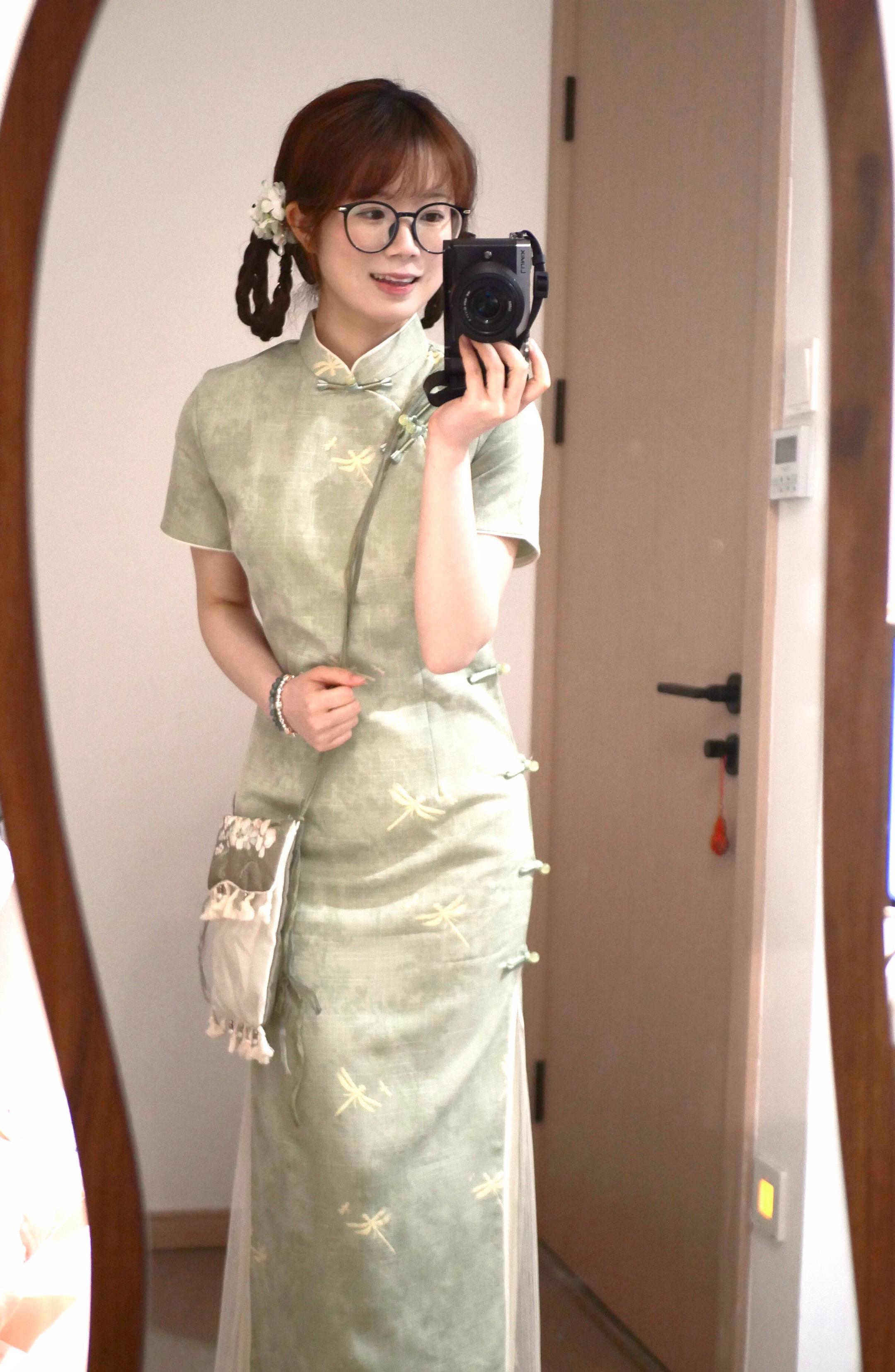 不愧是古法旗袍^^虽然不那么修身,但是一上身就给人一种古典优雅的感觉~...