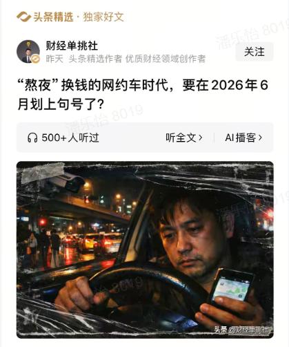 还有不到两个月,靠熬夜跑车换钱的网约车时代,就要迎来大变化了。 2026年6月1
