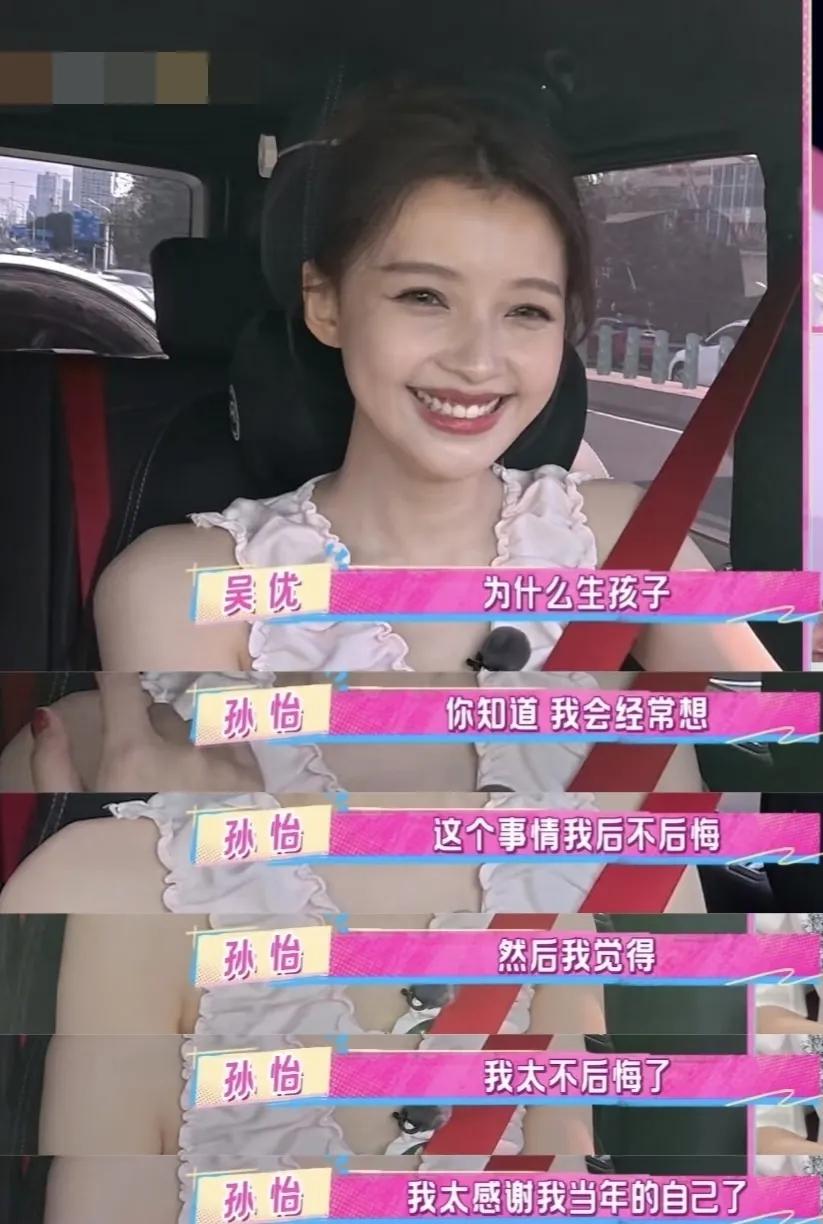 孙怡和董子健真爱无疑了。 她说过:“我一点也不后悔年纪轻轻生孩子,我太感谢当年的自己了”。 很多女生听到后纷纷说:“对啊,年轻有冲动,过了35岁,想恋爱的心情都没有了,更别说去生儿育女了”。 所以,孙怡在年轻的时候及时把这事完成,剩下的精力都用来做自己喜欢的事,这规划真好,你们觉得呢?
