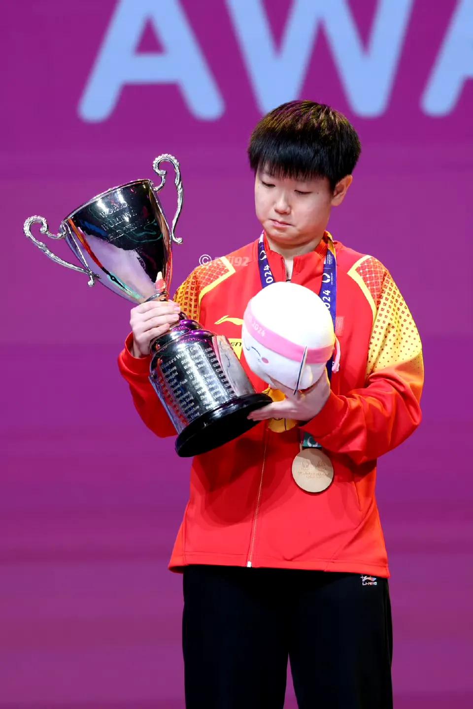 孙颖莎三连冠创造了历史! 她找奖杯上面有没有自己名字, 像以前一样仔细和开心, 她说胸前的国旗永远大于身后的名字, 所以一定会拼到最后, 带着绷带上场, 意志力大于一切, 她知道自己的目标是什么, 可能现在已经无有能与她争锋的人了, 她真正的对手是她自己, 是一种决心, 是一种热爱, 是一种心态, 在场上她像狮子王, 在场下她像小猫咪, 合影里她笑得非常明媚, 是那样的聪明可爱大方, 那些深夜的痛哭 训练室里的汗水, 无人喝彩的日子, 终究变成了最美的勋章。