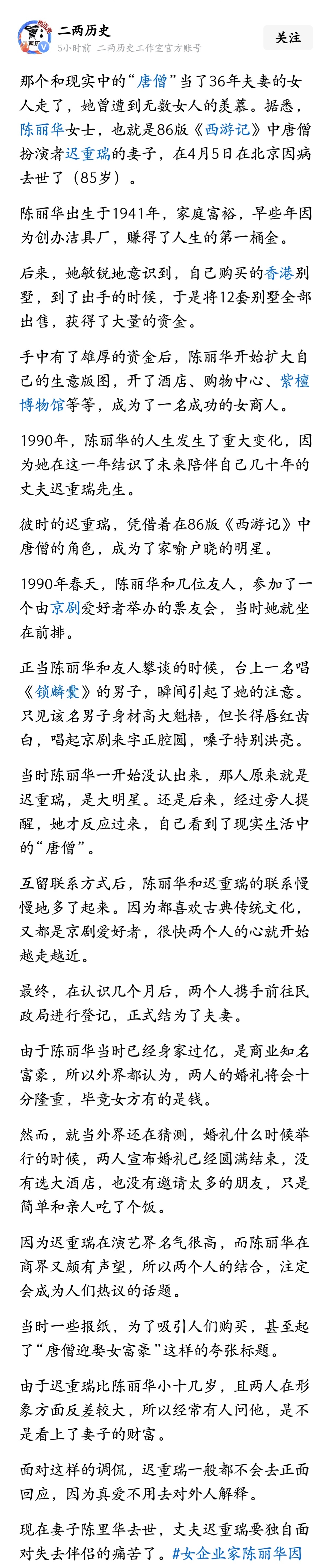 【#陈丽华逝世#】富华国际集团4月7日发布讣告:富华国际集团荣誉主席、中国紫檀博