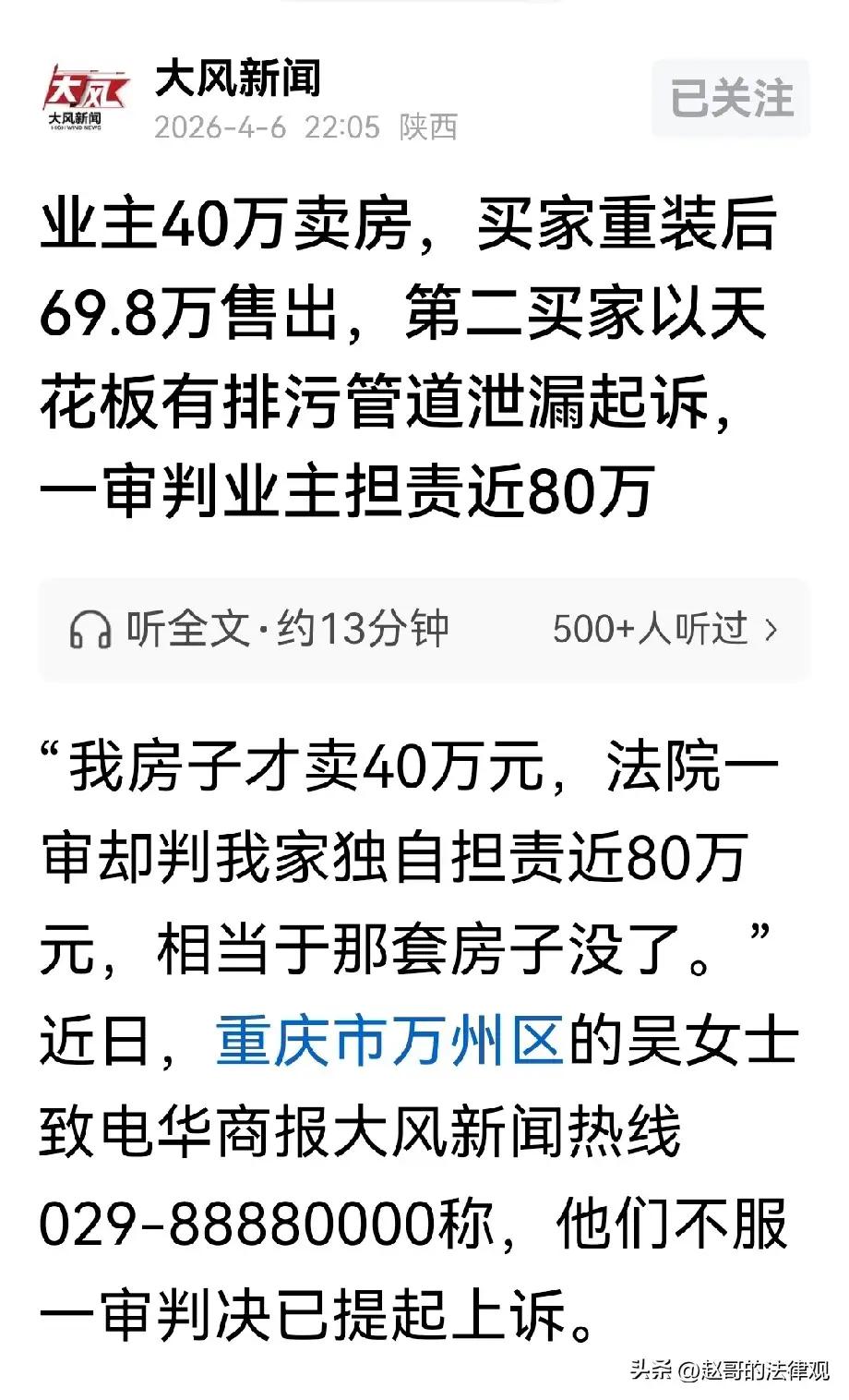 重庆万州icon,女子因搬家以40万的价格,卖掉了154平的学区房,买家装修后,以69.8万卖给了另一买家。万万没想到,过户7个月后,女子和第一买家,双双被第二个买主告上法庭,称房子的刻意隐瞒重要事实,使她受到欺诈,要求赔偿损失icon。岂料,法院一审排除第一买主,要求女子独自返还69.8万元购房款,和其他费用,总共大约80万元。女子不服判决,自己40万卖掉的房子,如今却要赔出将近80万,等于搭进去一套房子? 中介买了房子重新装修再高价卖出,其实原房主是善意的。不是有意欺瞒,这中间唯独漏了中介的责任,让原房主一人承担所有损失太不合理,卖了套房子还倒亏40万,很难让人接受,也给所有人提个醒,卖房一定要过户。 中介假买房,不过户,最后第一与第三者直接交易!我家卖房子的时候,吃过这个亏的!中介让你签个协议,拿到房子简单装修,然后加价卖出,多的钱与你一点关系都没有!真的是坏人! 最精的是第一任买主,不过户,搞得第二次交易变成原房主与向某的交易,自己撇得一干二净。 假设这套房子已经过手了10次,第十任发现漏粪💩,按本案判决逻辑,是不是也需第一任业主承担全部责任?再比如,二手汽车,过户n次,最后出车祸,按本案逻辑首任车主承担全部责任。 其实就是中介低价买过来,但是没有过户,所以卖出去一定要过户,中介买过来重新装修,再卖出去,但是不过户,还和原业主还签订了委托书,等装修后再卖出去,法律上来说朱女士只是一个原业主的全权代表,做的所有事都是原业主授权的,最后是原业主与装修后购买人签的合同,所以需要原业主承担责任,为什么要公证,中介朱女士不想承担任何风险呗。 法院这样判感觉很没有道理,人家房子卖了40万,现在让人家赔80万。房子又不是经过人家的手买的。 问问法官,如果是他的房子,判他这样赔钱,他同意不? 这好像第一个买主做的局!有意不过户,再卖出去,她重新装修,明知道有瑕疵,也不找房主,而是让房主帮她去完成交易,她好像知道法院会这样判案,这很蹊跷! 这个法院要查明判清,明知道有人在搞小动作,还要按规定执行,还要另案在判,是不是助长了坏风气。法院应该测查清楚,该移交公安机关侦办就主动移交,作恶的这些人,一个也不能放过。 网友表示:原设计确实跟房主没关系,说来说去真正和你有关系不过是排水管渗漏而已,这属于历史遗留问题,确实该原房主解决,换呗,那才几个钱。然后把管子周围霉变的修一修。至于管道走向,谁想改谁掏钱呗。 第一任房主和租户因为主管道排污漏水问题打过官司,就说明她知道自家这个房子有严重缺陷,不然也不会150平的房子40万就贱卖了。至于第二任房主在与第一任房主签署购买协议时有没有被告知,这得由第二任房主自证否则她也是知情方。然后又隐瞒转卖给下家第三任购买方那她肯定也是共犯,也应承担相应的退赔责任。