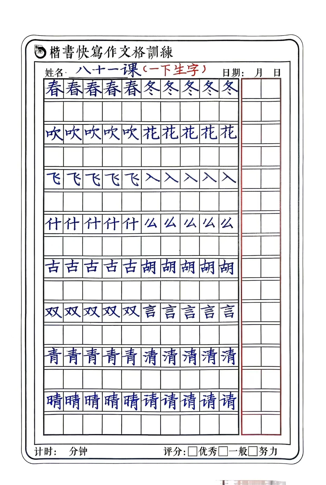 高效率训练楷书快写
