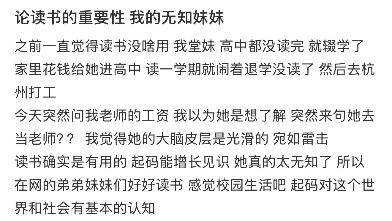 论读书的重要性 我的无知妹妹