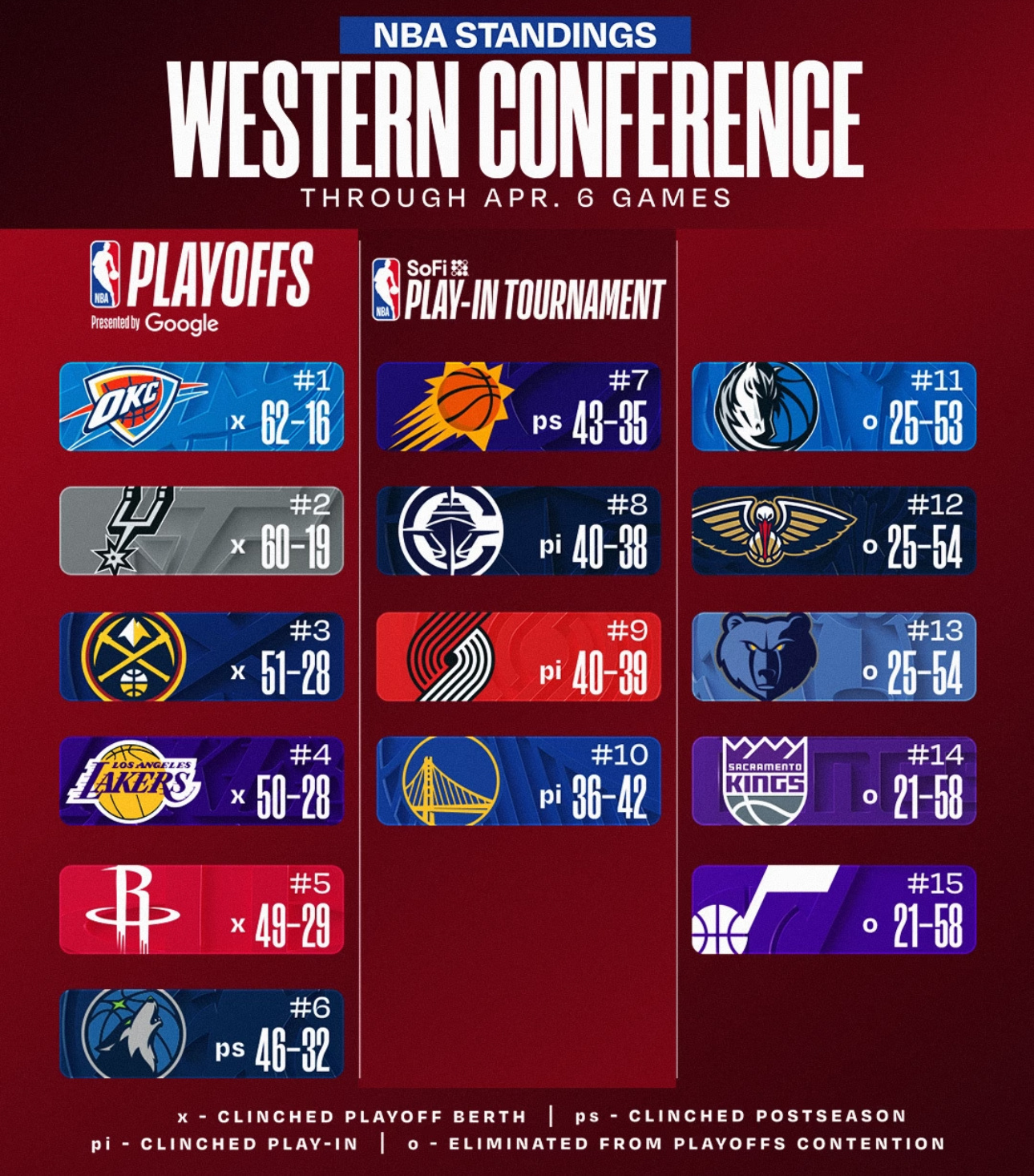 随着2025-26赛季NBA常规赛进入最后7天的冲刺,处于卡位区的队伍谁最有可能晋级?