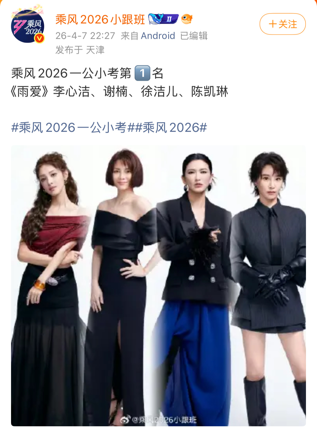 网传浪姐一公小考排名网传乘风2026一公小考排行