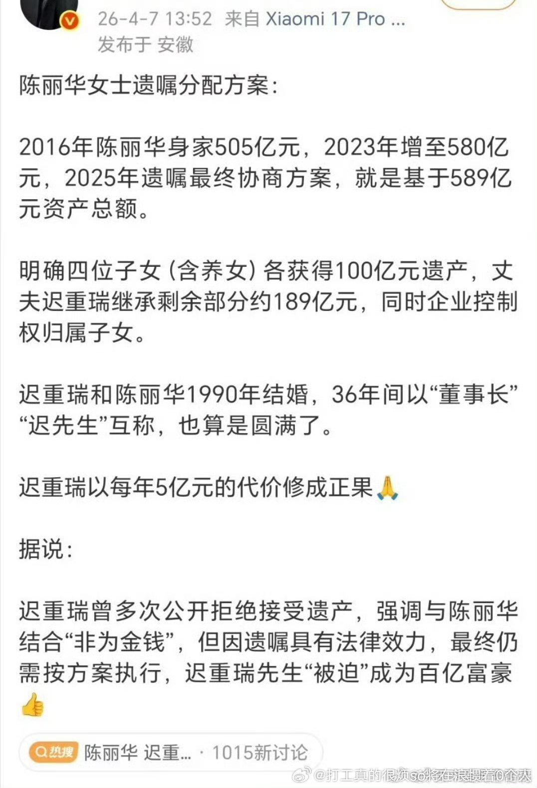 迟重瑞这么有赘德钱是他应得的.连养女都有100亿,富婆姐好