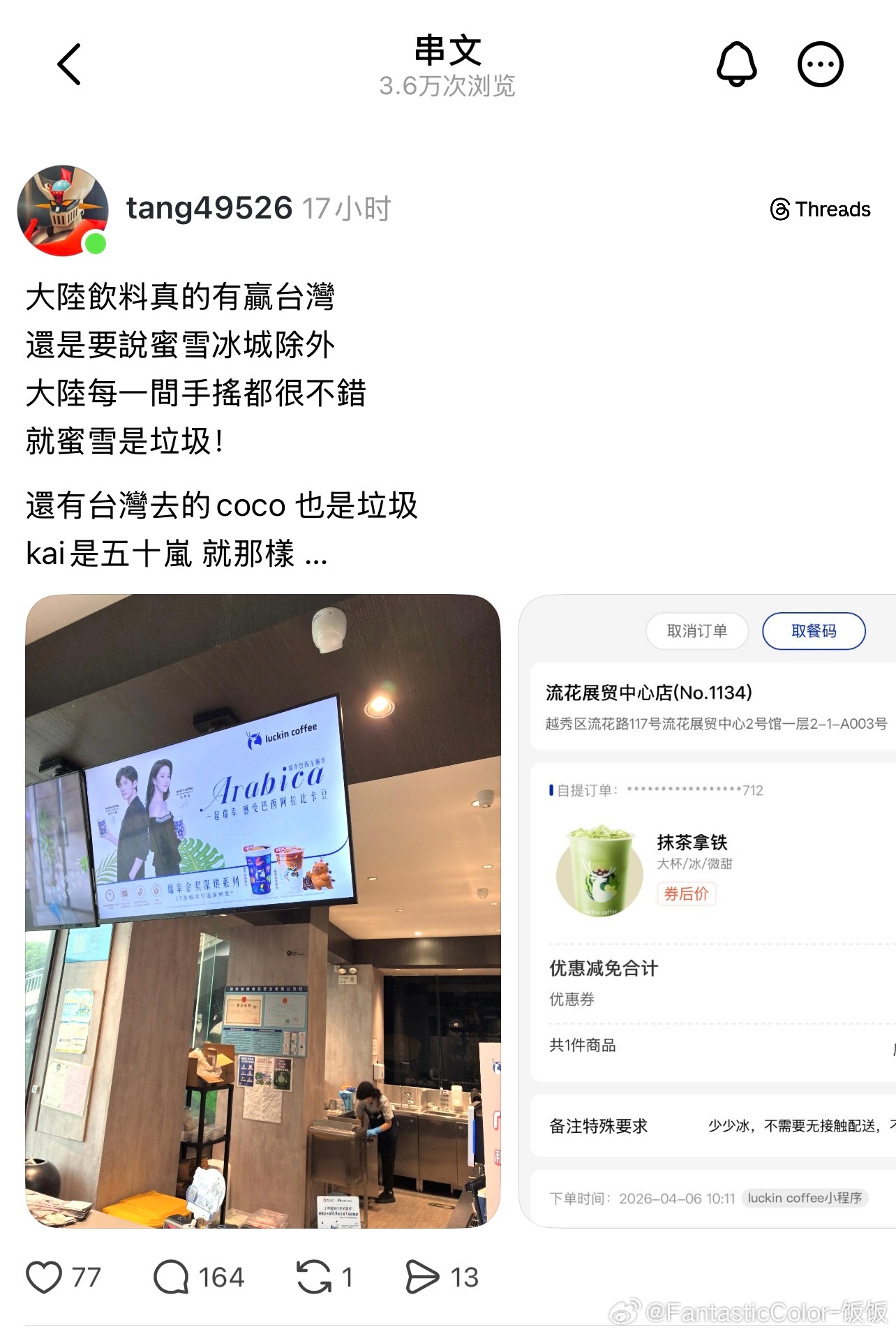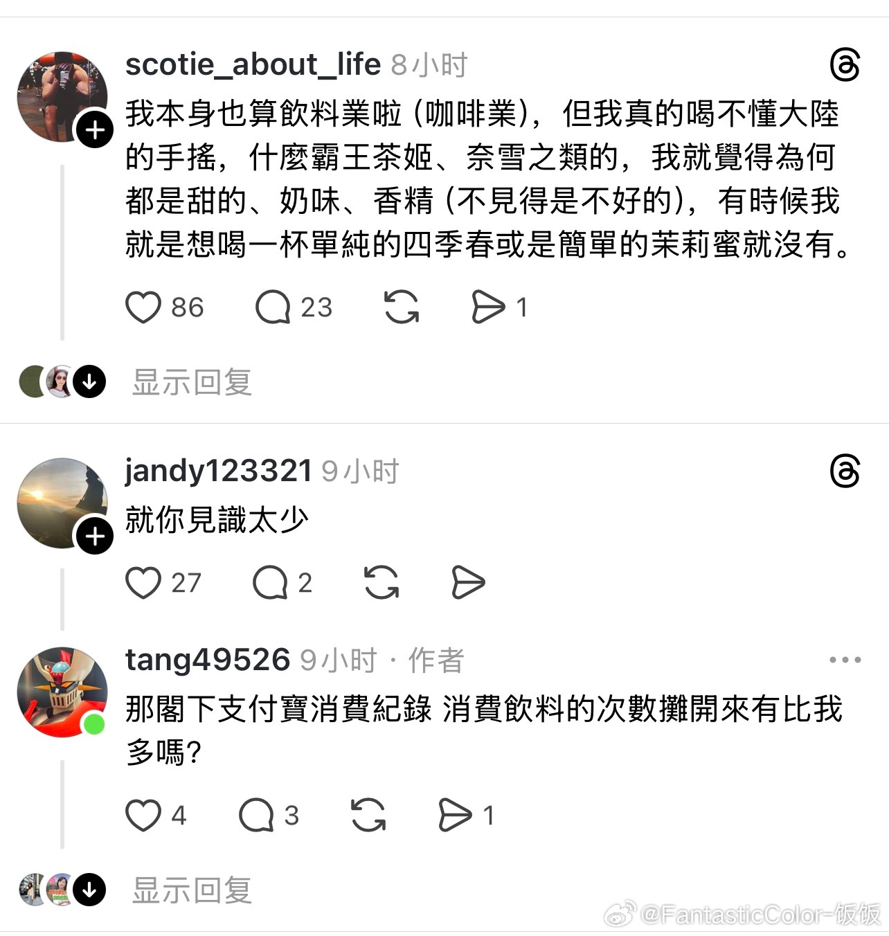 台湾网友发帖说大陆奶茶好喝,结果评论区全是破防反驳
