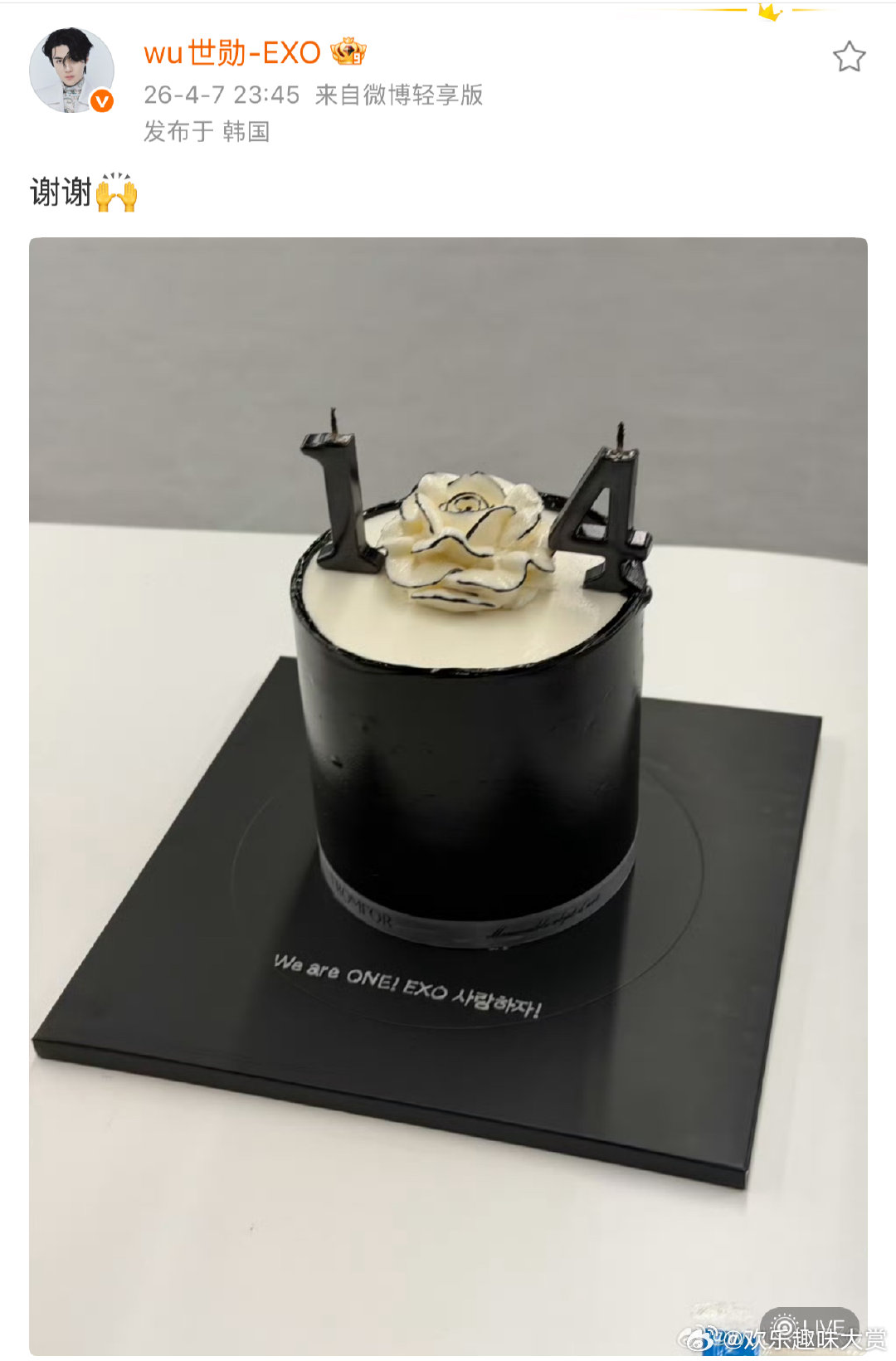 吴世勋晒蛋糕庆祝EXO出道14周年吴世勋晒蛋糕庆祝EXO出道14周年,还说了谢谢!吴世勋晒蛋糕说谢谢