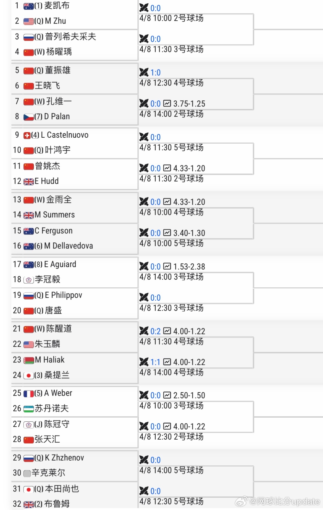 网球比分update