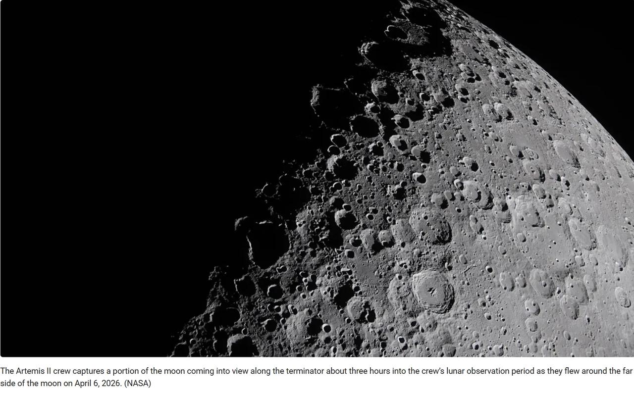 阿尔忒弥斯II号完成绕月飞行任务,开始返回地球 美国东部时间周二下午,NASA宣布阿尔忒弥斯二号乘组人员正离开月球影响范围,开始返回地球。 航天局表示::“我们预计‘猎户座’飞船现已脱离月球的引力范围——此时月球的引力强于地球的引力。” 预计飞船将于美东时间4月10日在圣地亚哥附近的太平洋溅落,距离从佛罗里达发射进入太空九天后。