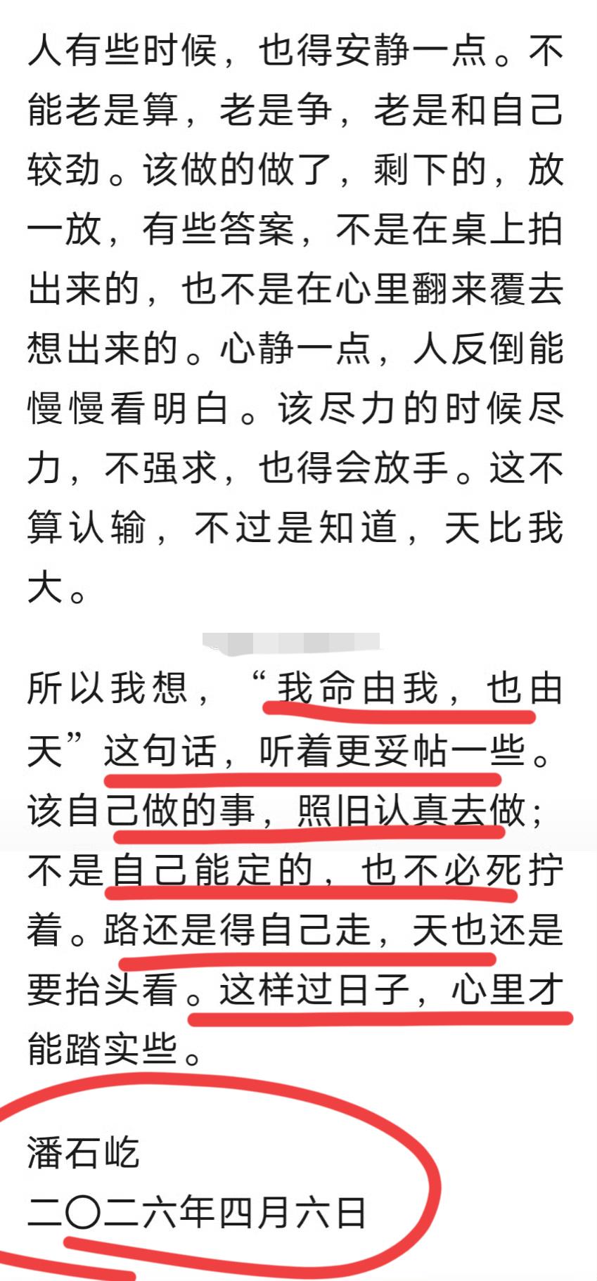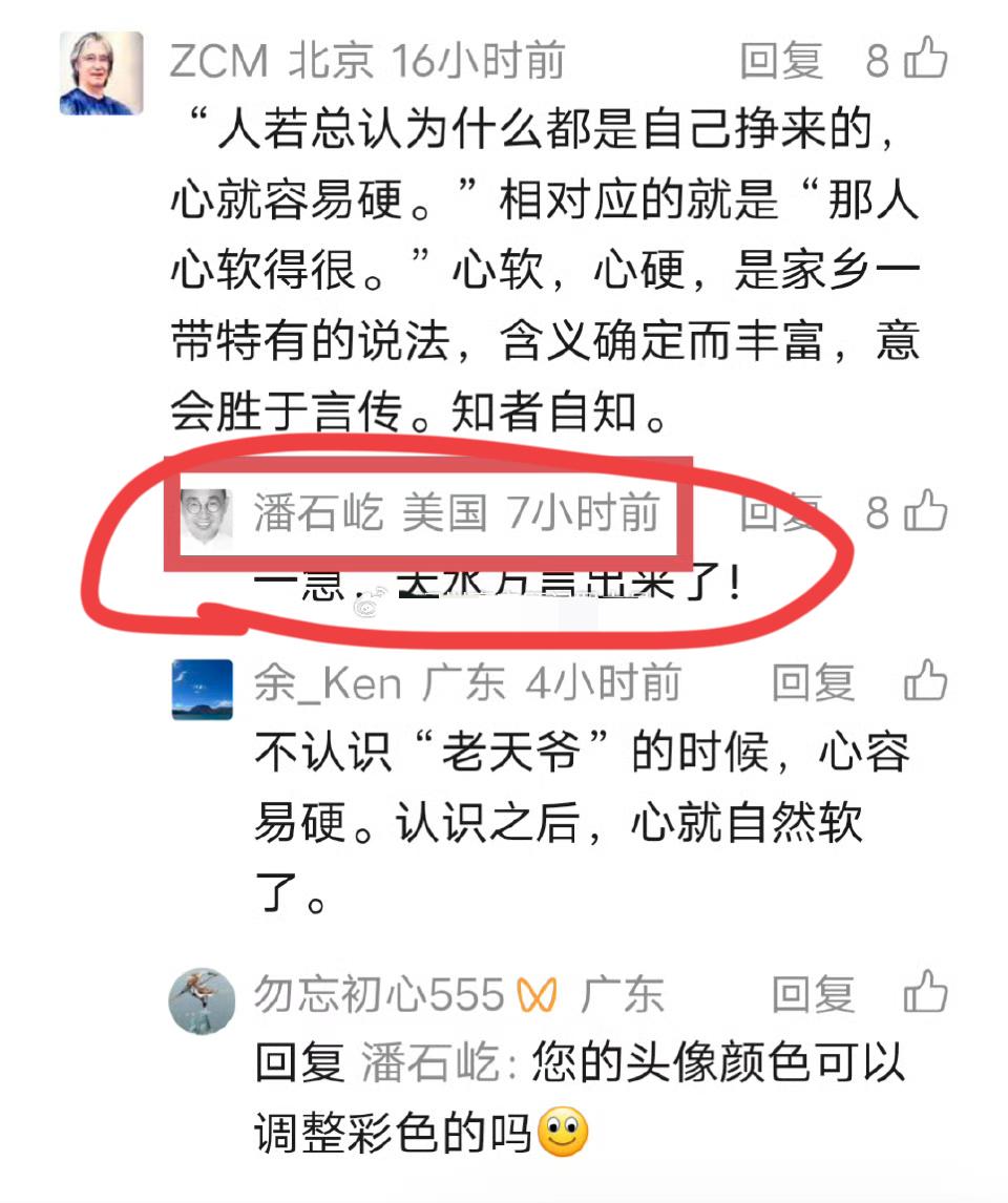 潘总清明节回老家甘肃天水祭祖了? 4月6日,定居美帝的潘总,突然在公众号发长文; 题目是:我命由我,也由天!! IP地址显示是在北京。 有网友推测,应该是潘总清明节从何美国抽空回老家祭祖; 潘总还是嗅觉很灵敏,最佳的时刻抛售离场; 这一点,他跟香港超人很像,不赚最后一个铜板。 最近几年,他也被骂得很惨; 但也有网友为潘总鸣不平; 他们认为,潘总虽然跑路离场; 但他没有搞烂尾楼项目,没有坑害消费者; 也没有拖欠农民工的工资,没有欠银行贷款; 这样的开发商,简直是良心了!! 你怎么看65岁的潘总回来祭祖,是想叶落归根了么?