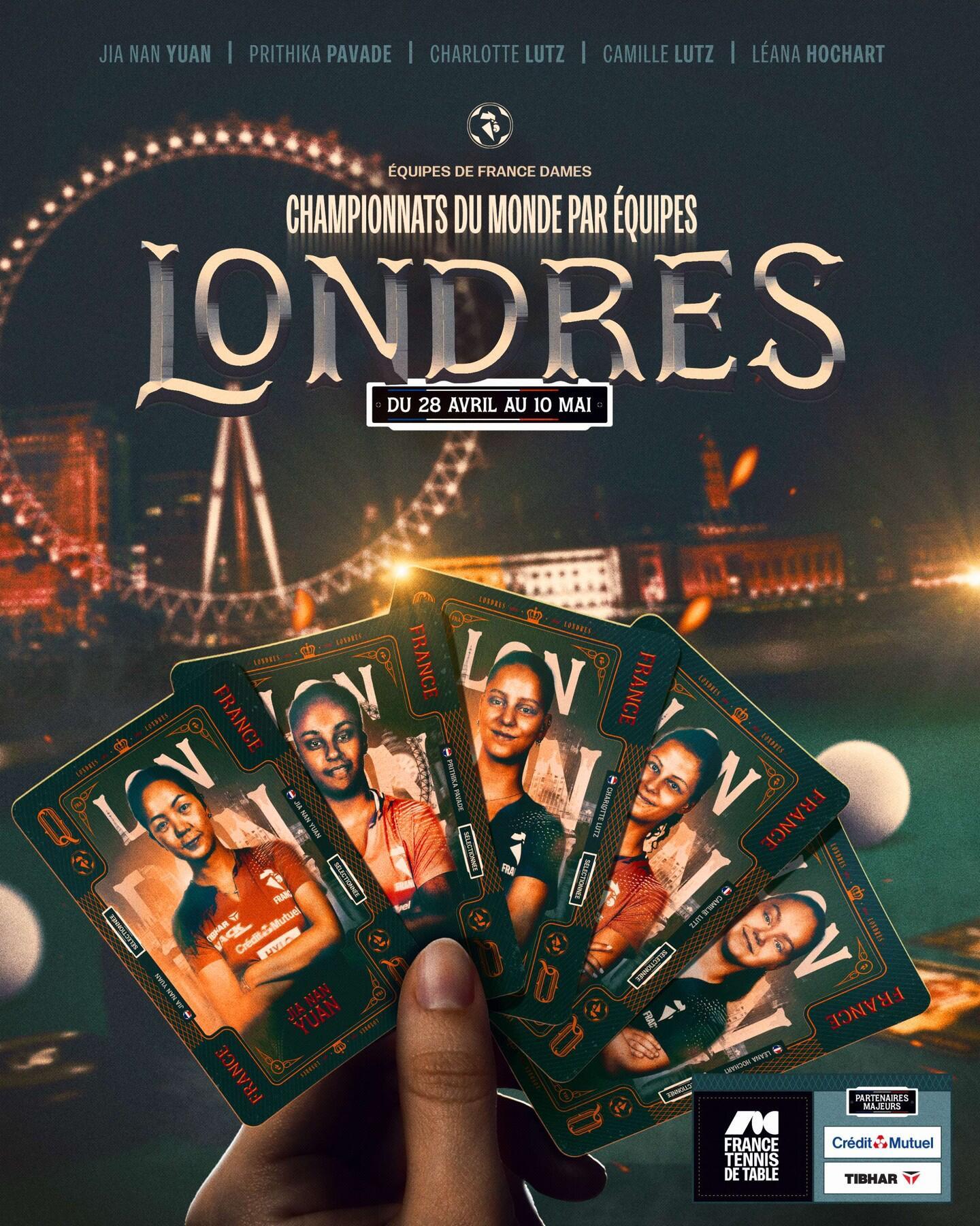法国乒乓球队伦敦世乒赛阵容,做的海报有种暗黑卡牌风