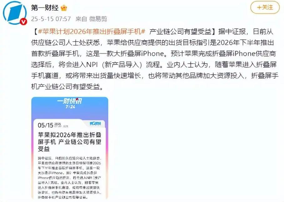 📱 苹果首款折叠屏iPhone试产!9月发布,顶配超2万,取消Face ID引热议🌪️ 苹果首款折叠屏手机iPhone Fold已在富士康试产,计划9月与iPhone 18 Pro同台发布!这款“万元折叠iPhone”采用书本式横向内折设计,4:3屏幕比例,展开后8英寸4K屏媲美iPad mini。因机身太薄,取消Face ID改用侧边电源键集成Touch ID,配备双4800万主摄+5000mAh电池。国行起售价1.4万-1.5万元,顶配版或超2万元,刷新苹果手机价格天花板!💥 核心亮点一图看懂👇 ✅ 颠覆设计:横向内折,折叠厚度9-9.5mm,展开仅4.5-4.8mm,外屏5.5英寸。 ✅ 配置解析:4K内屏+专属iOS系统适配分屏操作,双摄模组主打影像。 ✅ 解锁革新:无Face ID,侧边Touch ID集成电源键,灵动岛功能保留。 ✅ 价格争议:2000美元起售(国行约1.4万起),顶配或突破2万元。 市场波澜:传闻风波与辟谣反弹📉 近日苹果股价因“工程难题”传闻一度暴跌超5%,但知名爆料人古尔曼紧急辟谣称“按计划推进”,股价随即反弹。分析师认为,尽管折叠屏技术复杂,但苹果强势入局将拉动产业链升级,并借中国市场需求强化高端地位。✨ 网友热议焦点: “2万块买折叠屏?真成‘肾机’了!” “取消面容解锁,指纹党狂喜!” “苹果入场,三星压力给到,期待国产跟进降价!” 📌 亮点提炼:用“万元折叠iPhone”制造记忆点,数据化解析配置与价格,结合市场波动和网友声音增强可读性,话题标签直击热点,符合科技圈传播逻辑。 信息来源:红星新闻(2026年4月6日) 话题:iPhoneFold试产 苹果折叠屏首秀 2万起售价 手机价格天花板