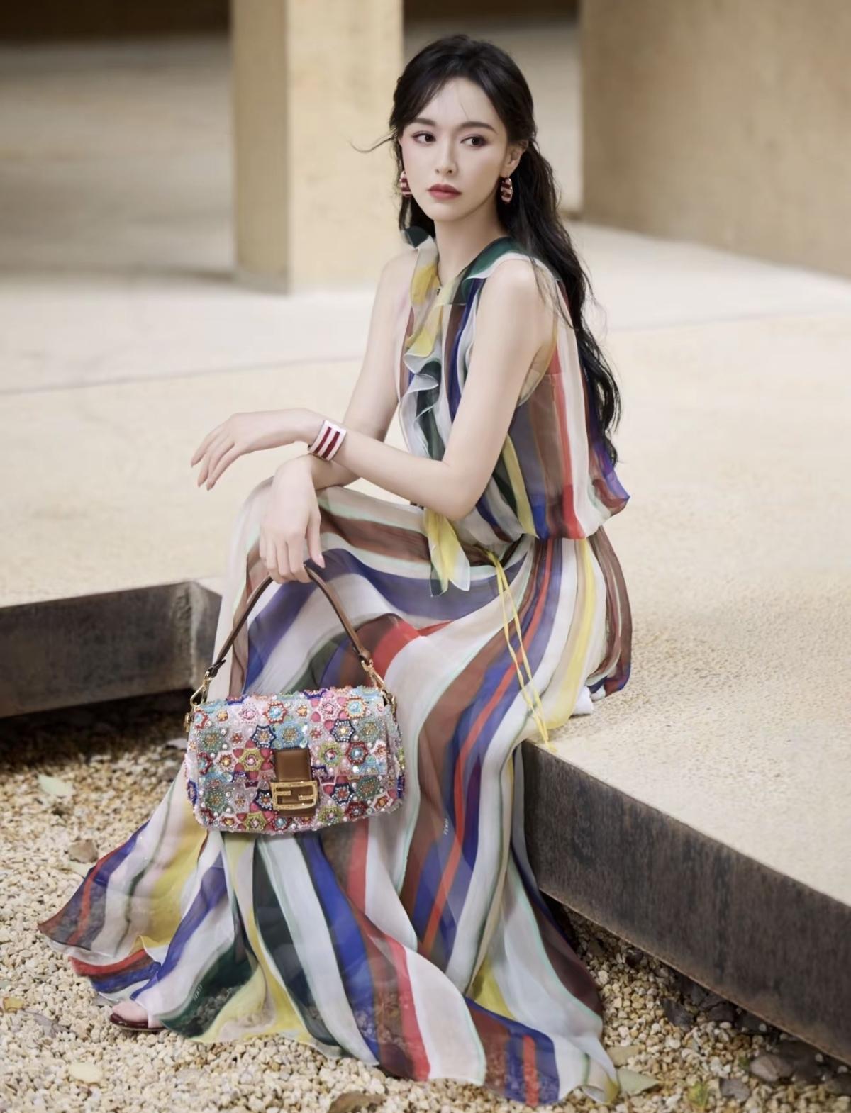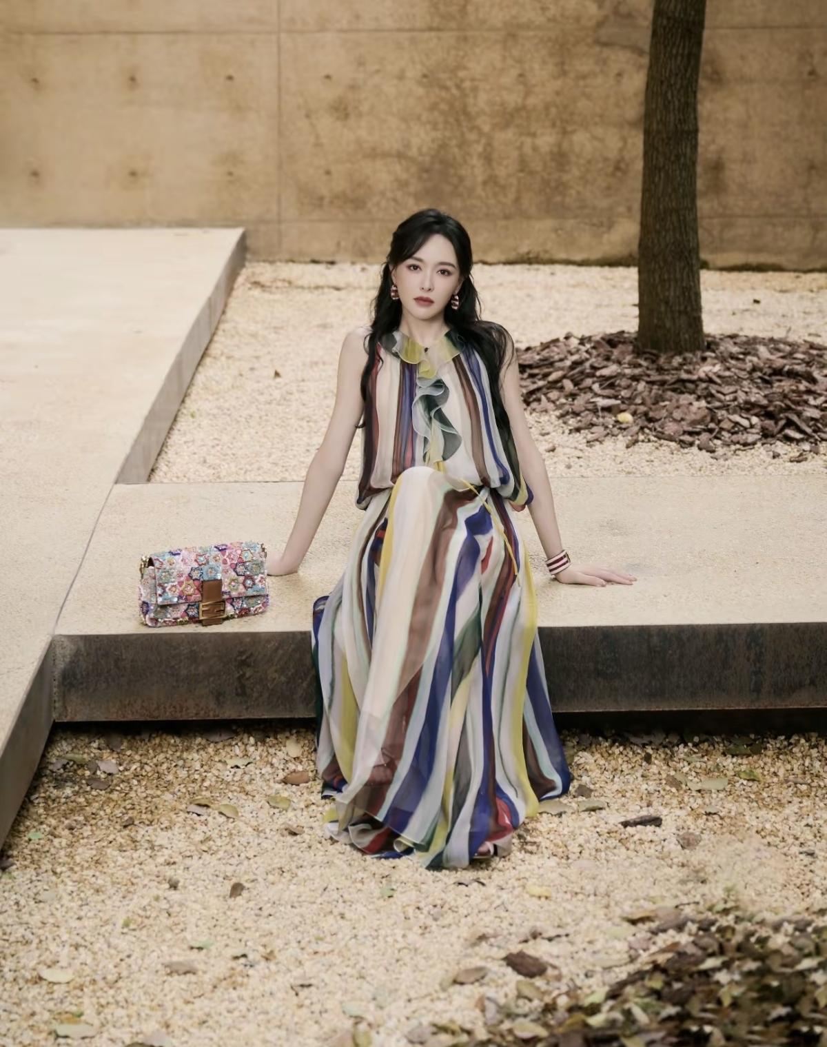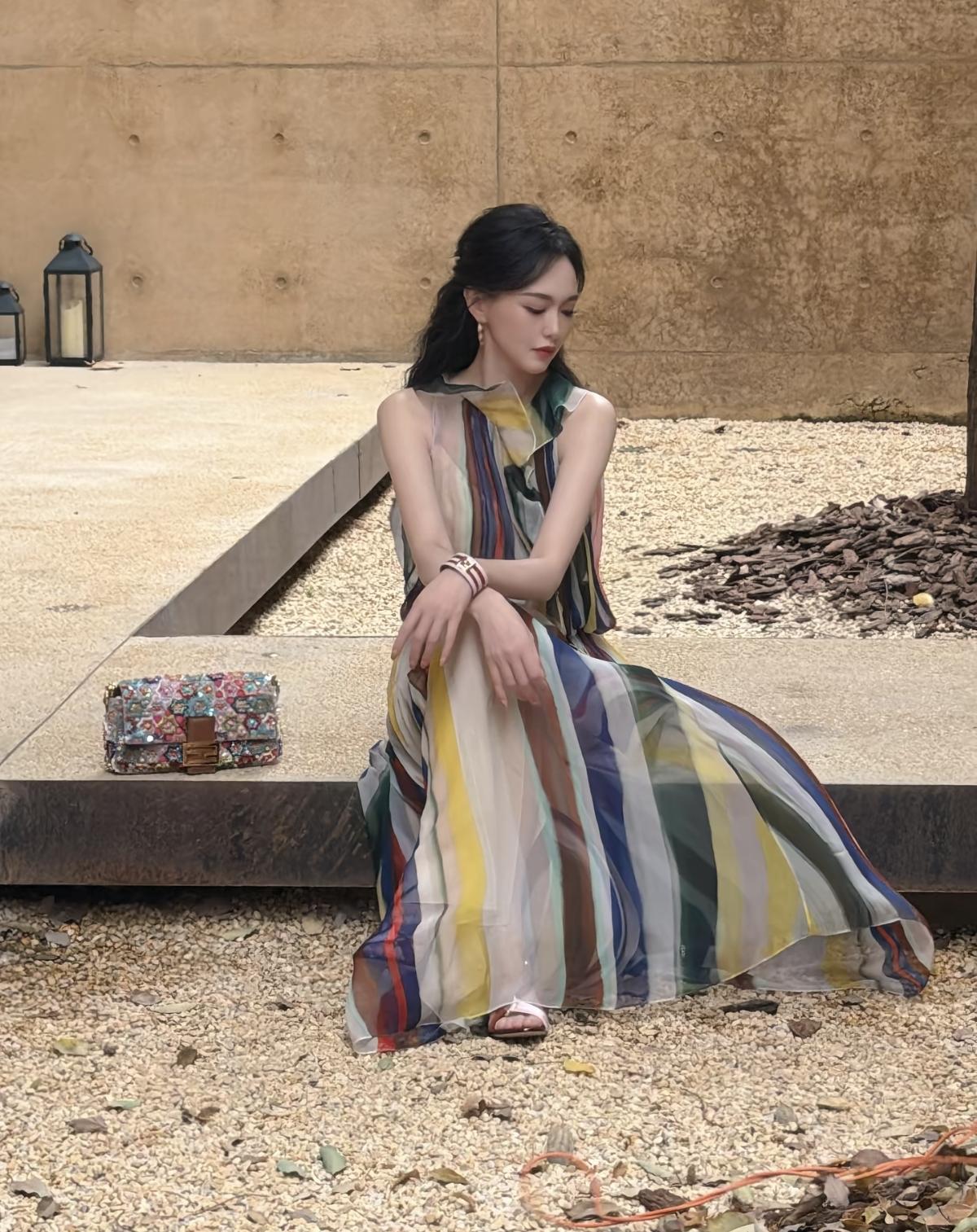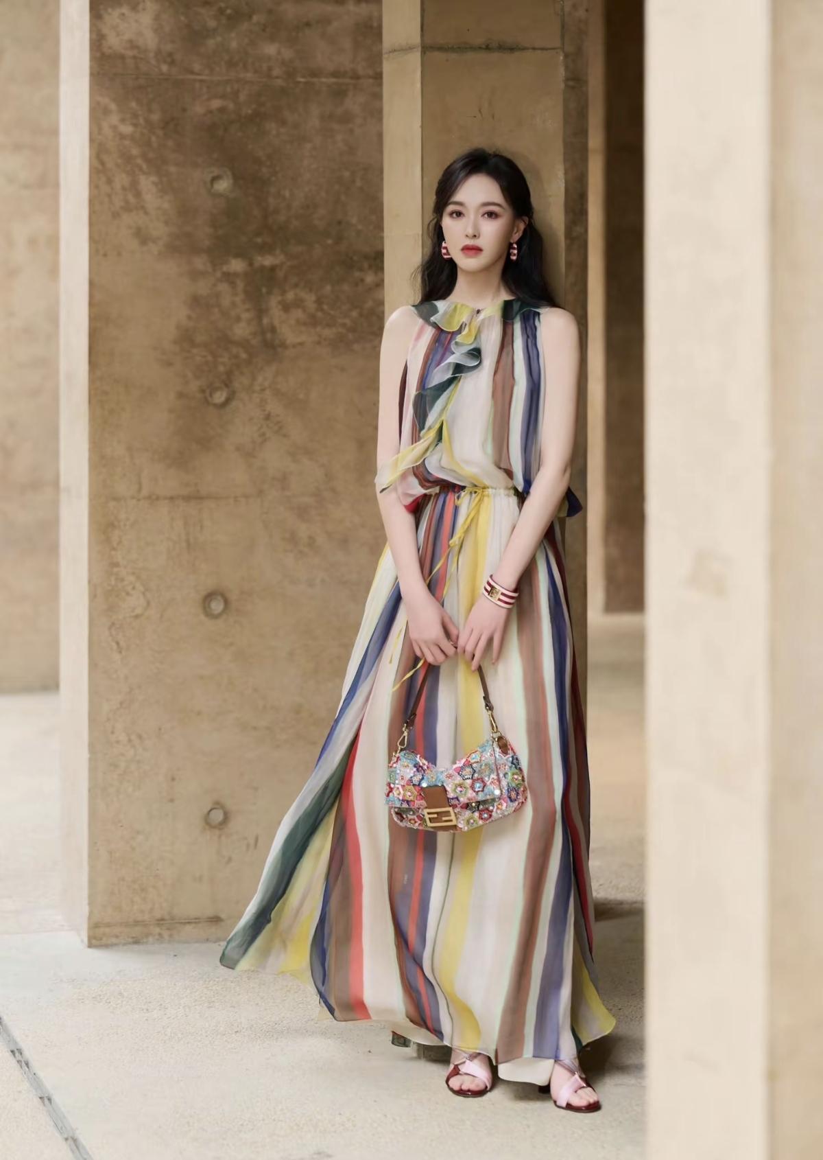 FENDI品牌全球代言人唐嫣亮相Domus FENDI私享罗马意境之旅景德镇站,一袭彩色条纹薄纱长裙,在复古质感的空间里,诠释品牌的意式奢华与艺术格调,唐嫣的灵动气质与造型完美适配,尽显东方女性的优雅魅力[赞][给力]娱乐明星