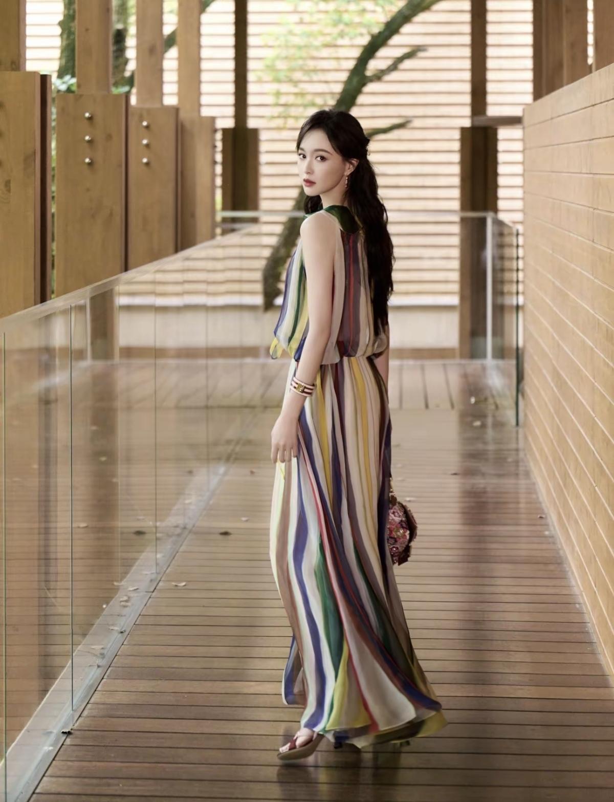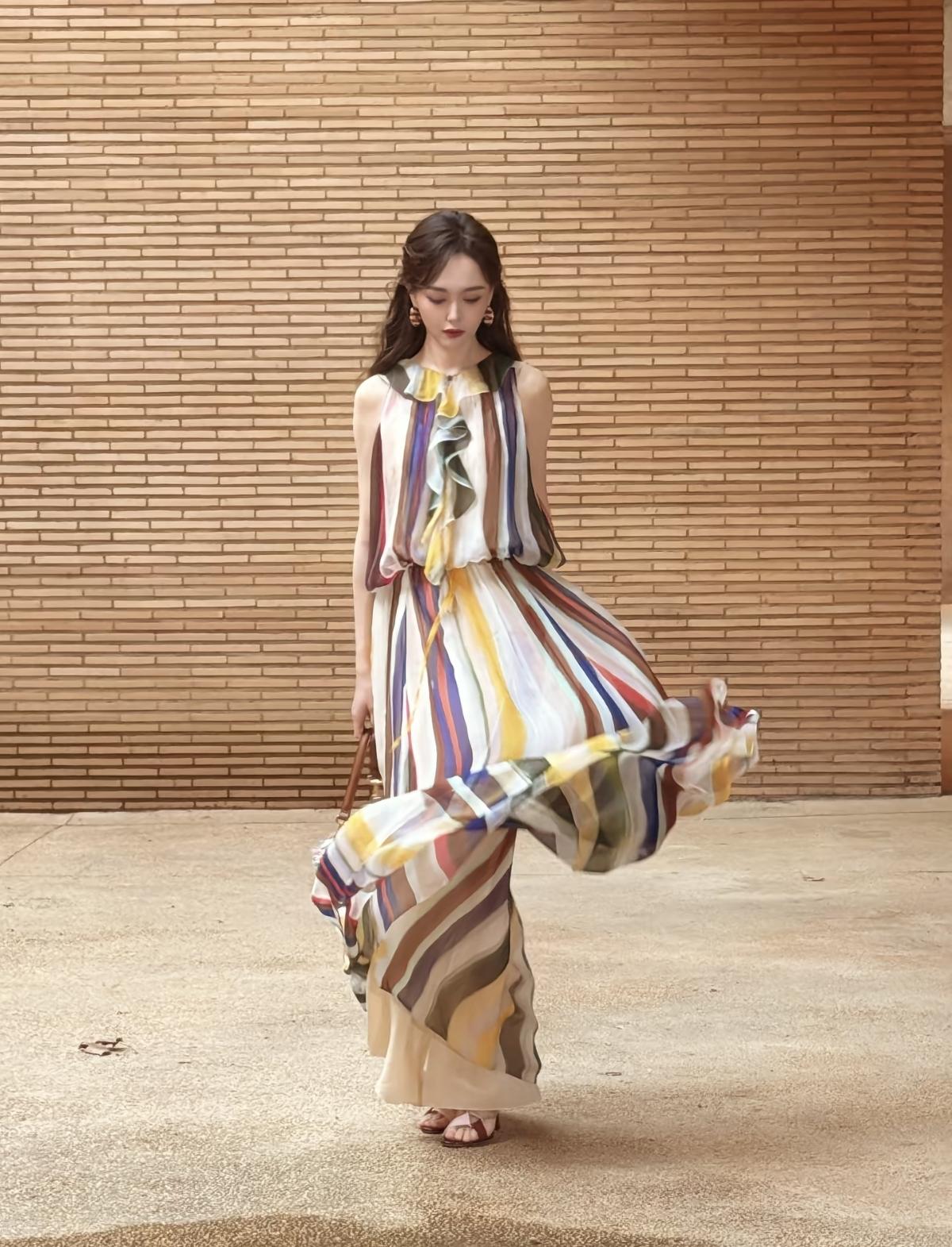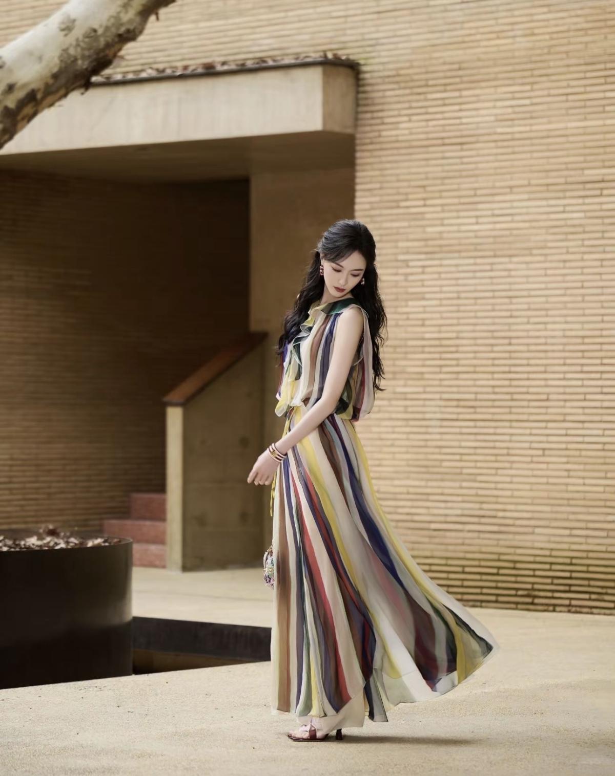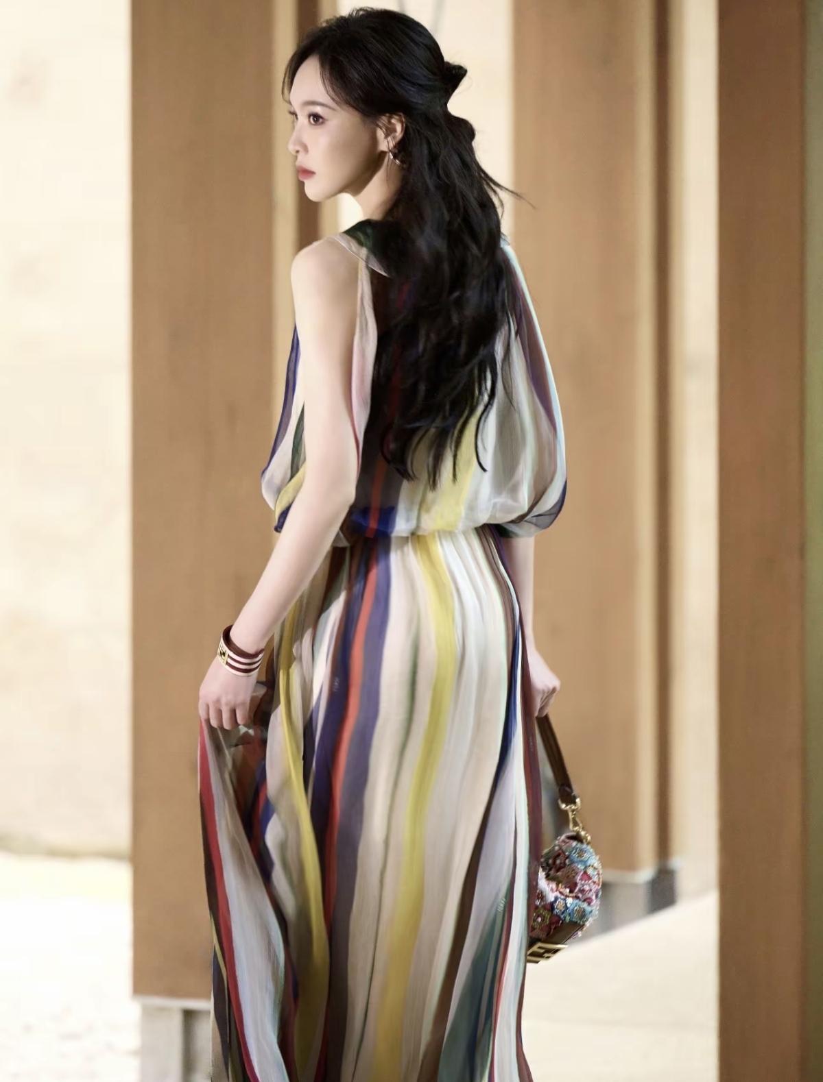 FENDI品牌全球代言人唐嫣亮相Domus FENDI私享罗马意境之旅景德镇站,一袭彩色条纹薄纱长裙,在复古质感的空间里,诠释品牌的意式奢华与艺术格调,唐嫣的灵动气质与造型完美适配,尽显东方女性的优雅魅力[赞][给力]娱乐明星