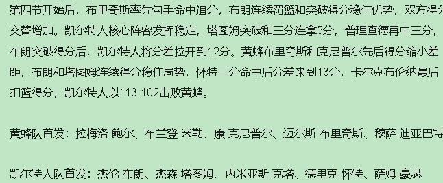 113比102,绿军啃下黄蜂。您先别急着夸三球那36分,这数据看着热闹,实则全是泡沫——下半场绿军一上绞杀防守,鲍尔立马现原形,24投12中看着体面,关键回合连球都摸不到。 黄蜂就一副"伪强队"德行。上半场61分,三分雨下得欢,米勒、布里奇斯人人敢打,活像联盟新贵。下半场呢?绿军把防守强度拉满,黄蜂瞬间断片,单节26分,进攻只剩三球一人硬凿。这叫啥?这叫"一人球队"的癌症晚期,核心一被掐,全队直接死机。 绿军这边才叫季后赛球队的筋骨。布朗35分9板,球球往篮下杀,第四节连续造犯规,那是巨星的硬度;塔图姆手感一般照样23分,关键反超三分手不软。最狠的是第三节那波窒息防守——怀特、布朗轮番贴鲍尔,挤过挡拆像钉子,协防轮转像齿轮,黄蜂直接喘不上气。 三球36分5板6助攻,数据刷子罢了。他需要学的不是怎么刷分,是怎么在绞杀时刻让队友活过来。米勒全场20分,下半场隐形;布里奇斯13分12板,攻坚时刻人在哪儿?绿军用一场标准的"上半场放水、下半场收网"告诉你:年轻人,想上位?先学会48分钟不松劲。 这场球是给黄蜂的成人礼,也是警钟——天赋满格但缺防守韧性,等于豪车没刹车。绿军四连胜拿的不是靠手感,是靠防守端的饥饿感。黄蜂想进季后赛?先把"打卡下班"这毛病治了。凯尔特人击败黄蜂4连胜