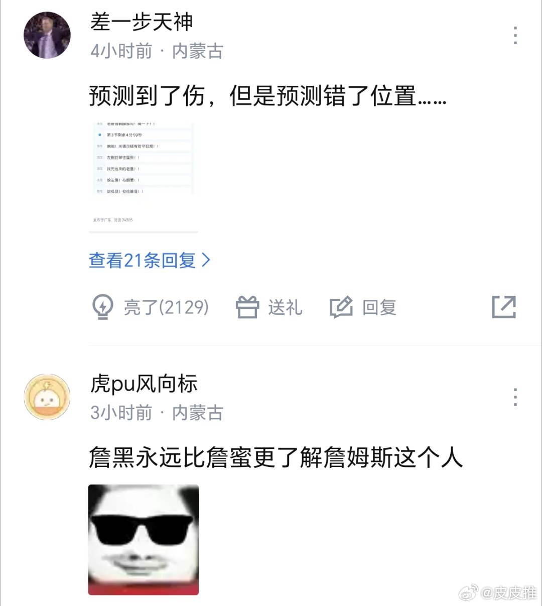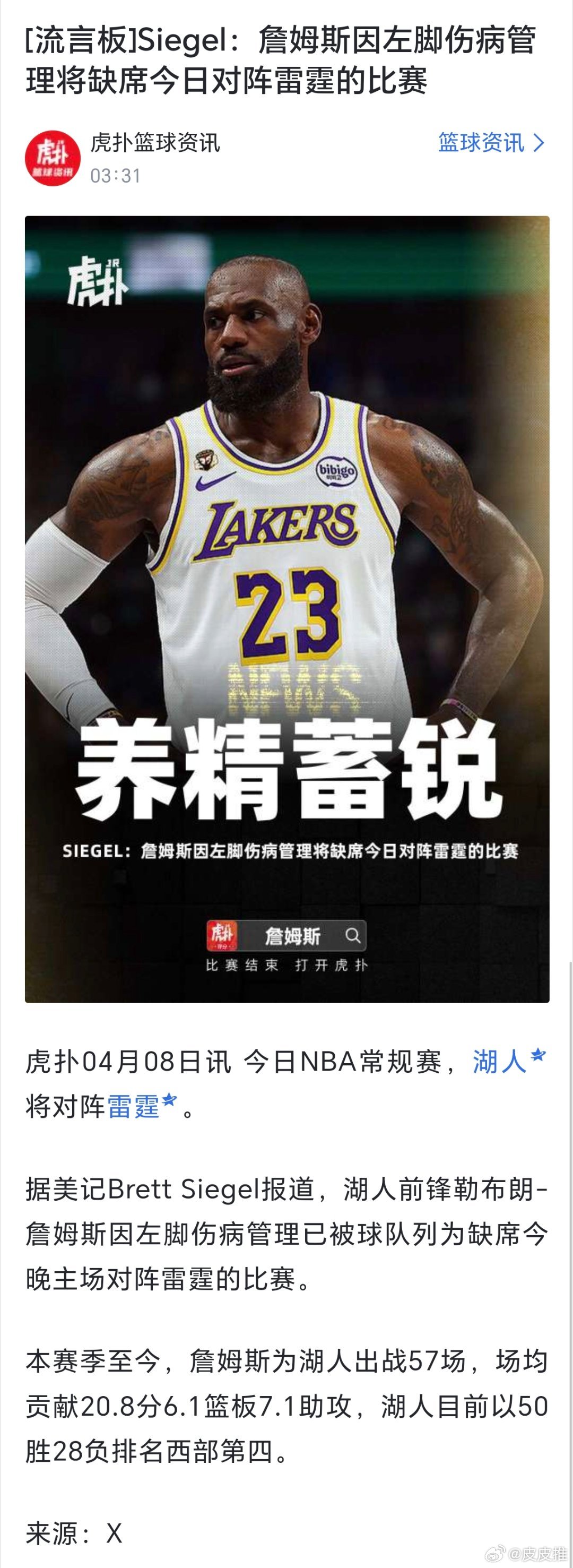 詹姆斯缺战雷霆詹姆斯因左脚伤病管理将缺席今日对阵雷霆的比赛。网友评论:詹黑永远比詹蜜更了解詹姆斯这个人NBA