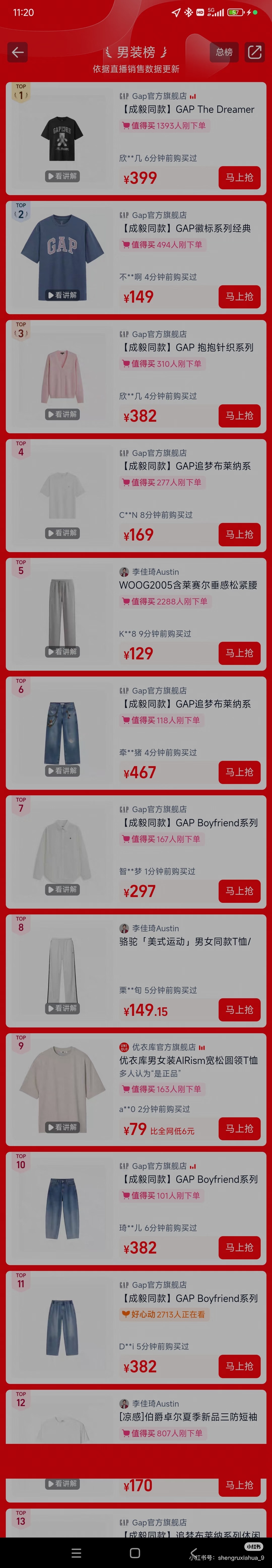 成毅官宣GAP新品首天,淘宝男装榜被GAP承包了!划不到头,根本划不到头!成毅的商业号召力牛逼!成毅粉丝的购买力牛逼!品牌得成毅真的狂喜!