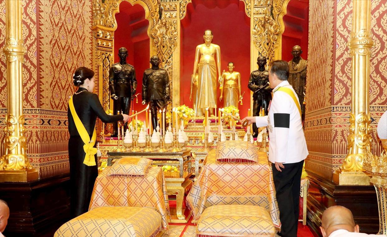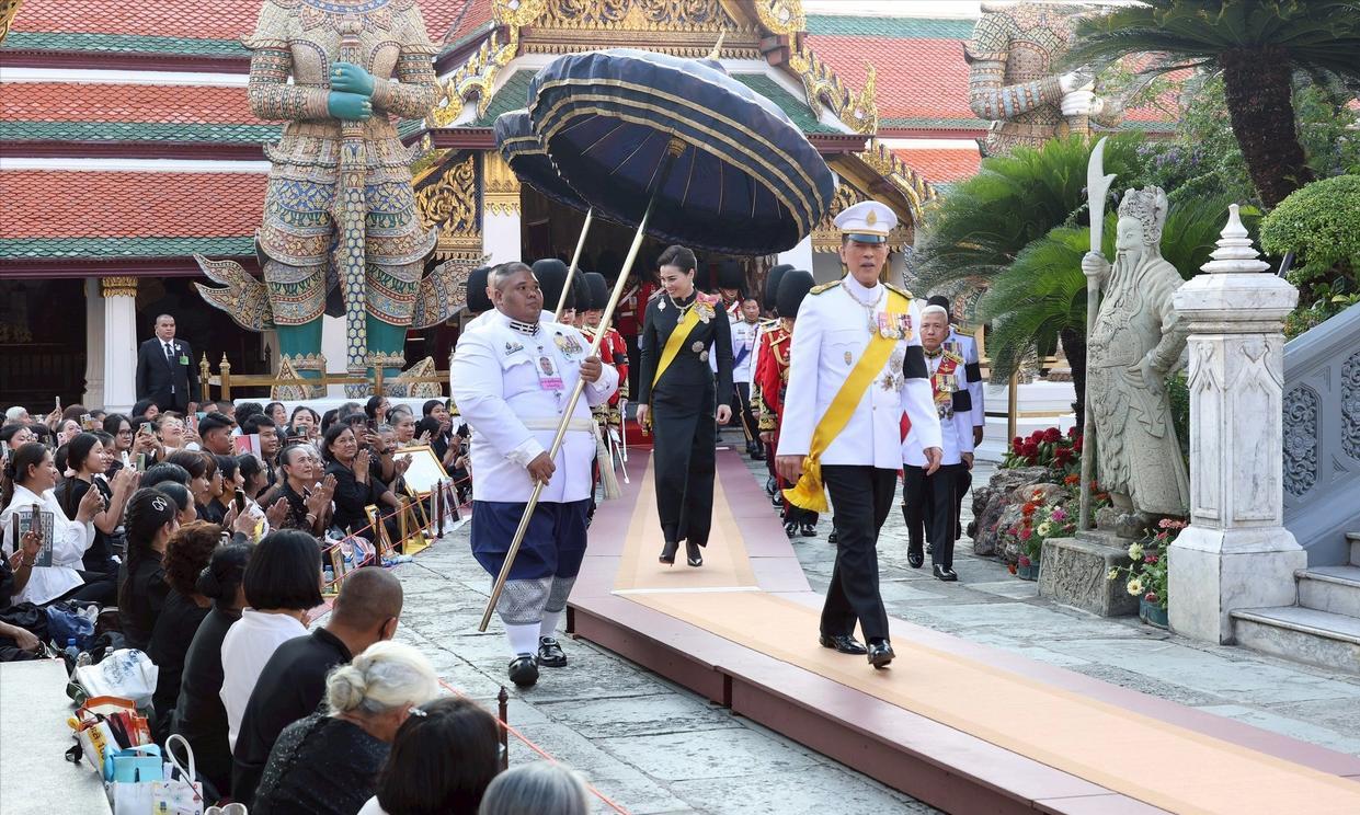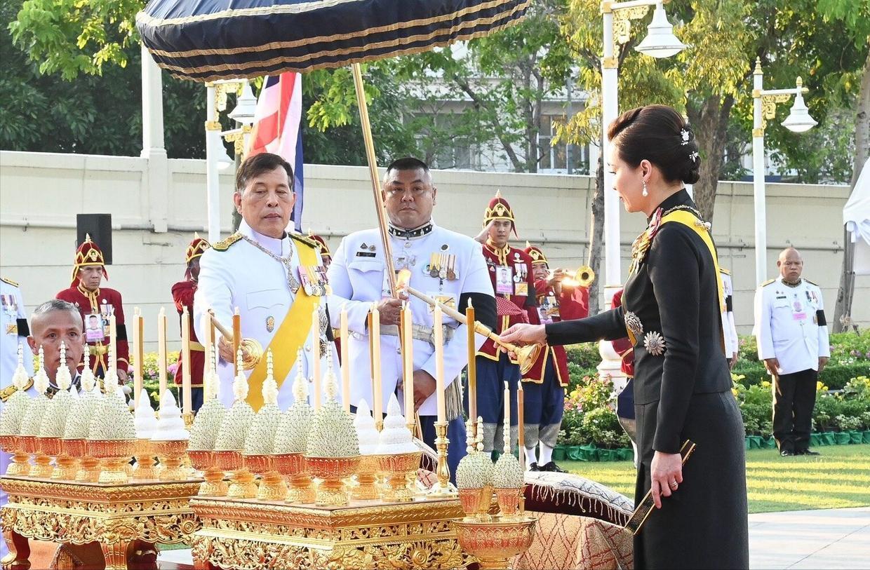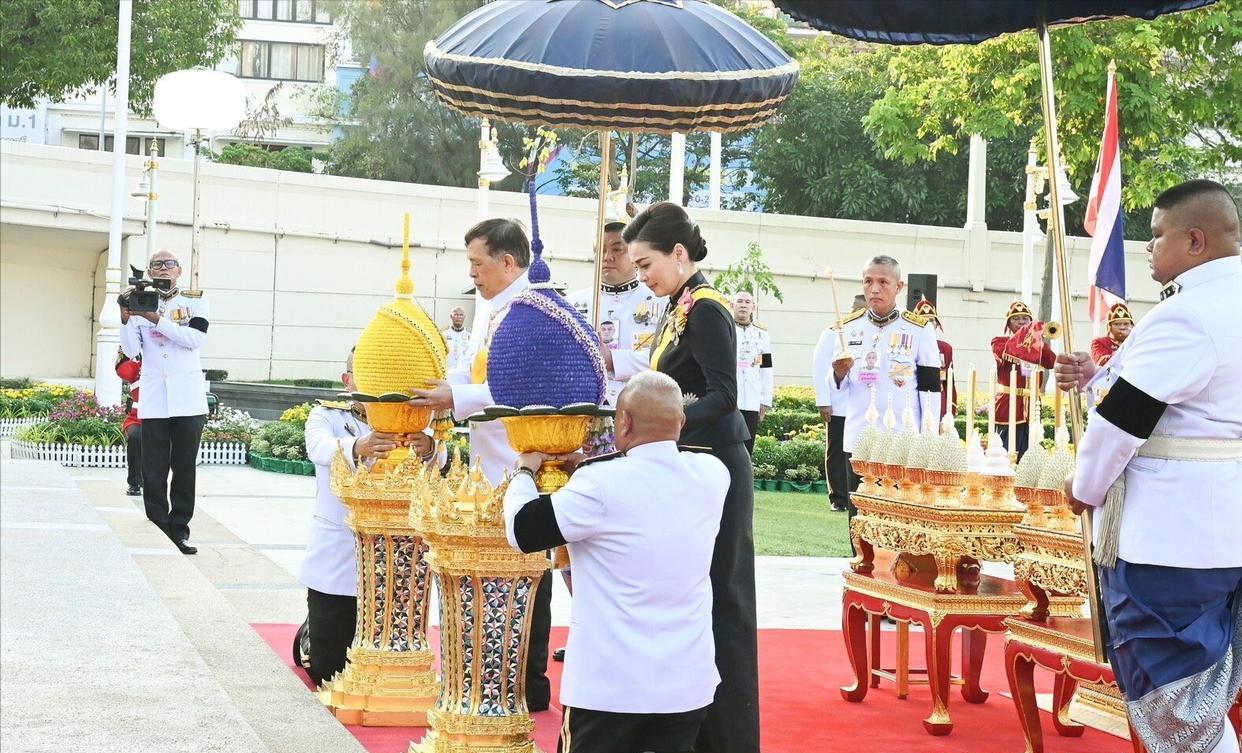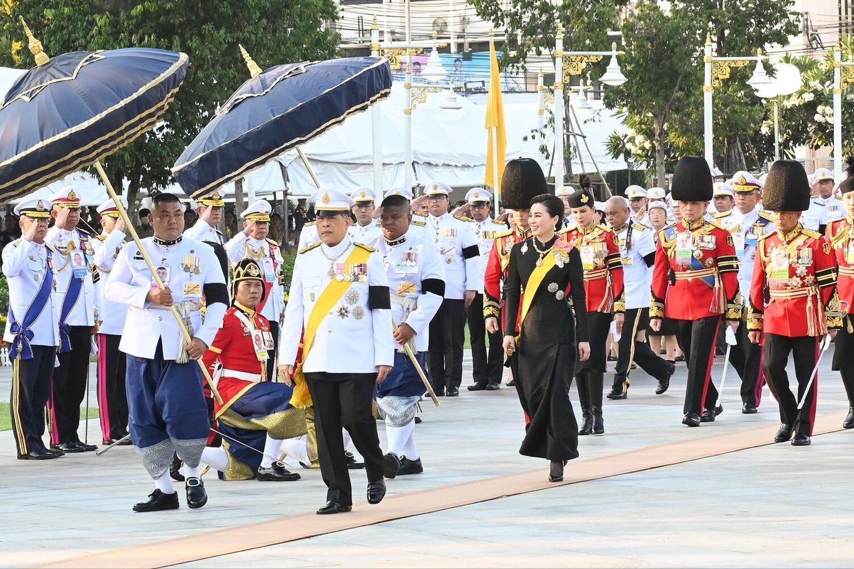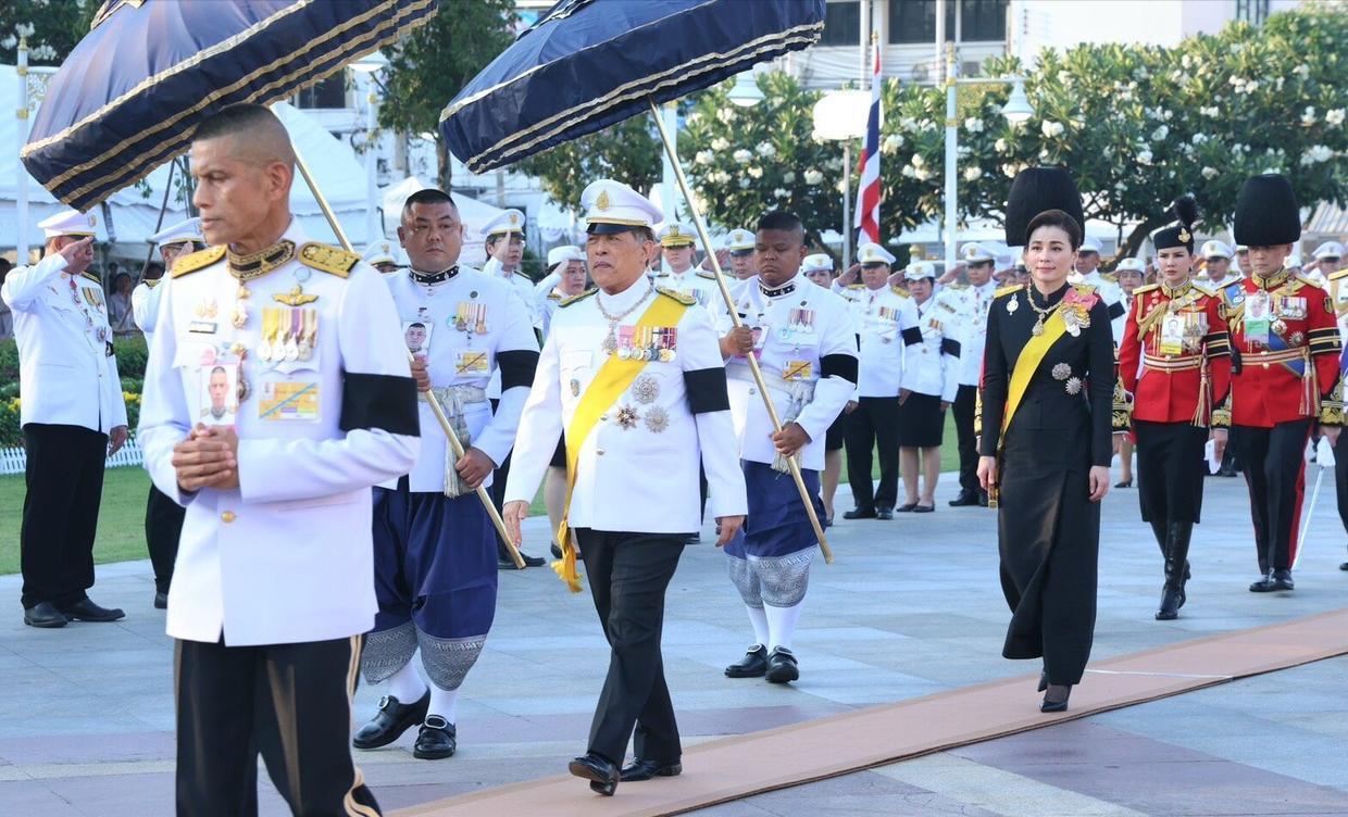 4月6日,正值泰国的“却克里日”,也叫却克里王朝纪念日。泰王玛哈携带妻子苏提达王后一同前往拉玛一世的纪念铜像,主持纪念仪式,以纪念先祖的功绩。 苏提达王后穿着一身黑色泰丝裙,佩戴黄色绶带,手持折扇,优雅又贵气。 王后前一段时间独自前往外地度假,泰王虽然没陪同,但是苏提达返回时,玛哈国王也亲自开车到机场接机。 这次出席纪念仪式,苏提达王后拿着折扇,活动后,还贤惠得给玛哈扇扇子,很是温柔,也尽显夫妻俩的恩爱。 这次,玛哈国王没有携带心尖宠欧拉弄,但是三大宠妃之一的巴帕颂却来了,穿着红色制服,默默的跟随在苏提达王后身后。