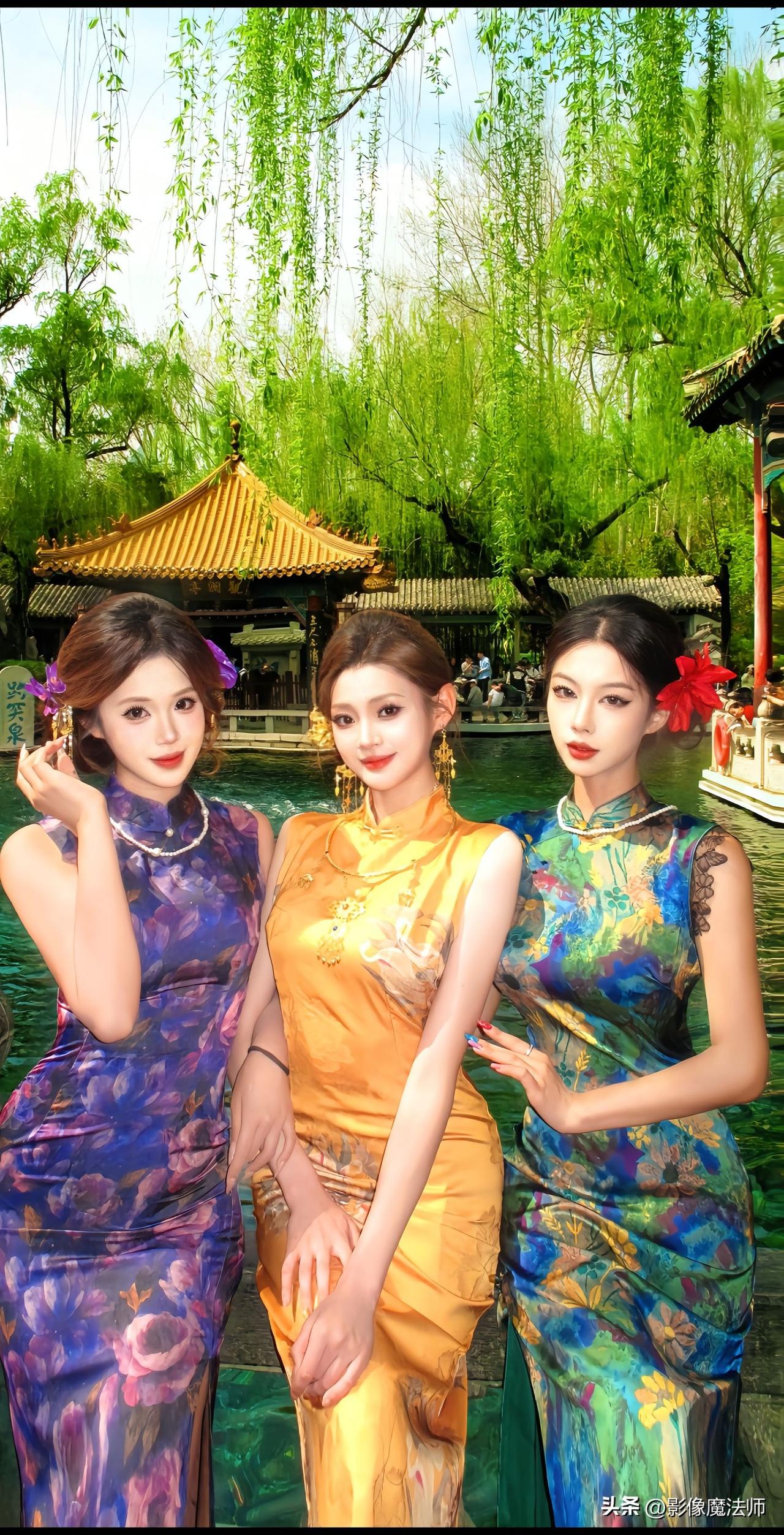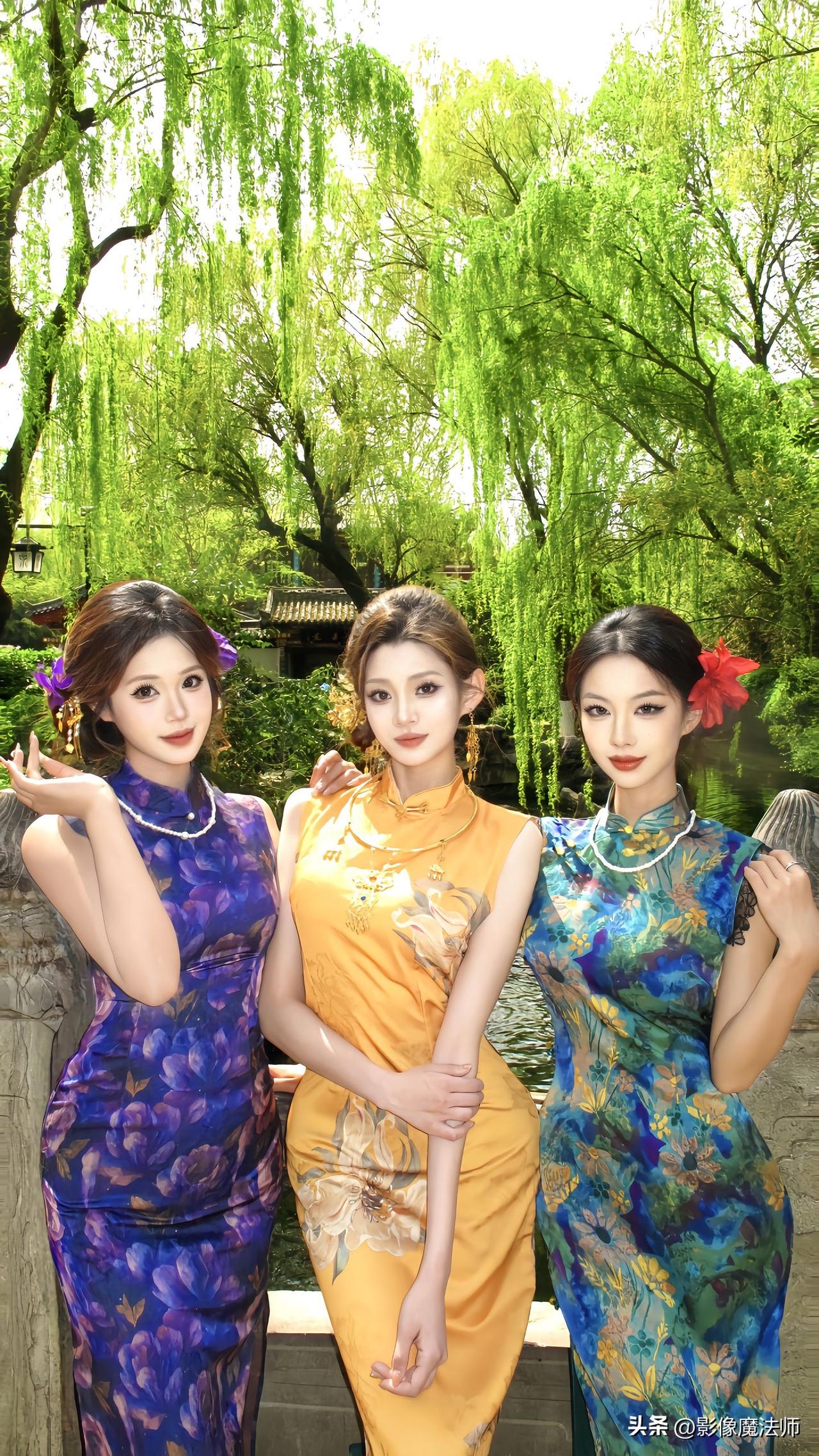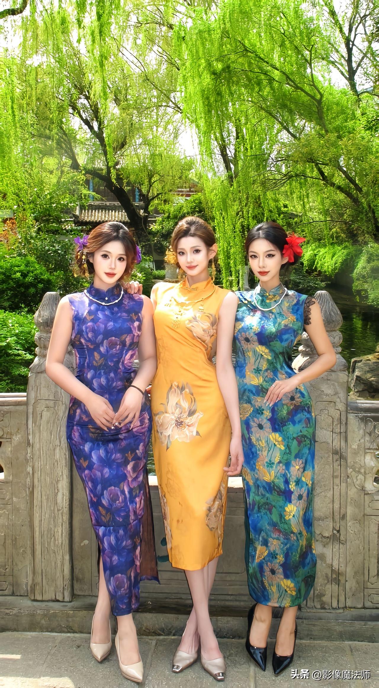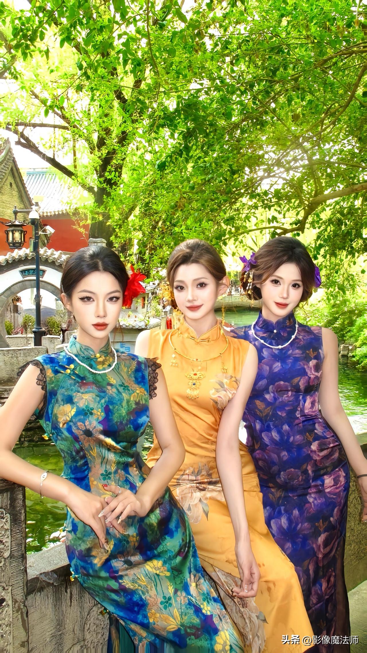 三姐妹穿旗袍同框,各有各的美旗袍姐妹聚会