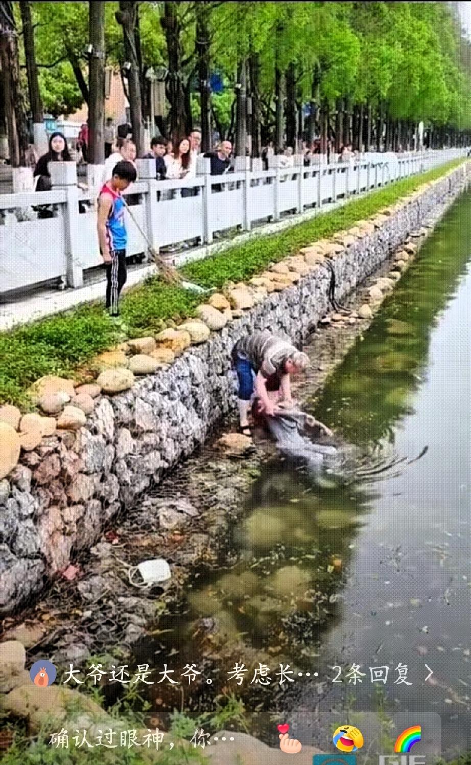 护城河里漂着一名女子,只有面部口鼻勉强露出水面,人一动不动,看上去情况不妙。当时情况较为紧急,不少围观群众都替女子的安全担心。 一位路过的大爷看到后,主动上前施救,他翻过护栏来到堤坝边,有年轻小伙想一同协助,大爷示意自己先行处置。大爷小心地沿堤岸靠近,伸手扶住女子的肩部,慢慢将其向岸边拖拽,过程中十分谨慎,避免女子再次滑入水中。 女子意识不清,身体较为瘫软,大爷将其稳妥安置在堤坝旁,确保她暂时脱离危险。岸边的群众也在一旁关注,有人及时拨打了报警电话,等待相关人员到场处置。从现场状态来看,女子身体尚柔软,还有生命体征,让大家松了口气。 民警赶到后,迅速将女子送往医院接受治疗,经救治后女子已无大碍,正在康复中,这一结果也让所有人放下心来。 这位大爷只是普通路人,却在他人遇到危险时主动伸出援手,没有犹豫也没有退缩,用平实的行动挽救了一条生命。生活中正是有这样平凡又善良的人,在关键时刻挺身而出,才让更多人感受到温暖与安心。见义勇为不一定要轰轰烈烈,危难时刻的一次伸手,就足以让人敬佩。 这样朴实的善举值得被更多人看见,也值得我们学习。