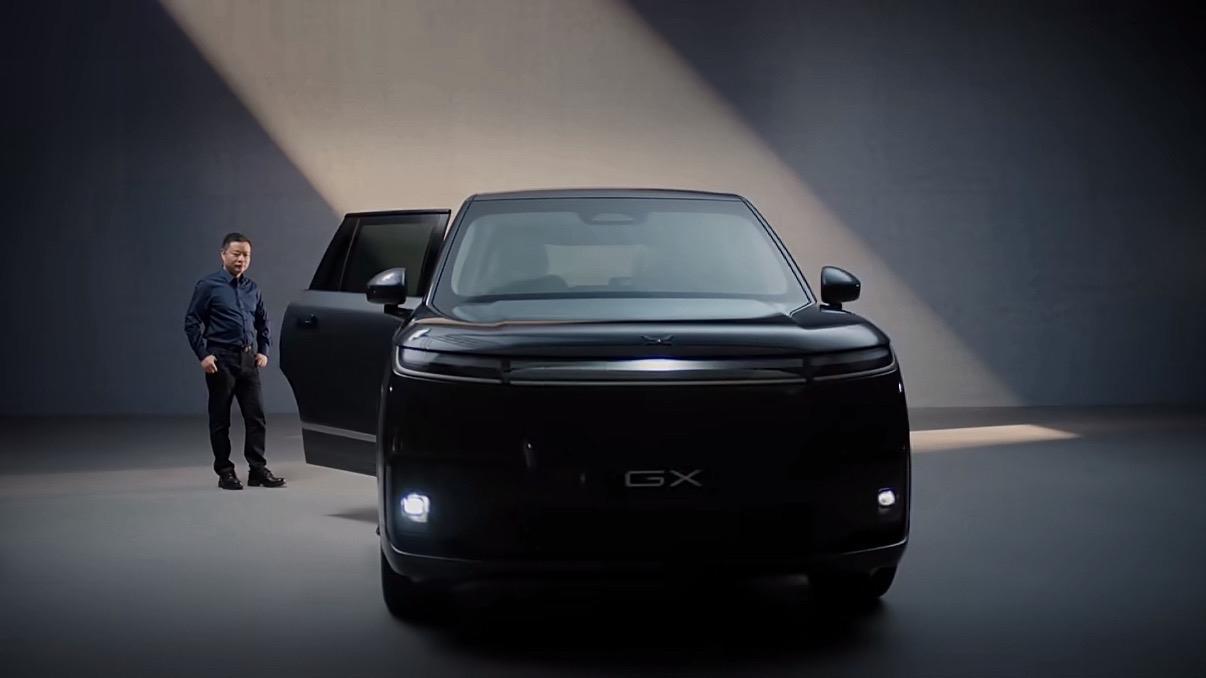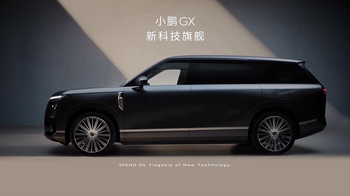 何小鹏带着他的全新旗舰SUV小鹏GX来了,5.3m车长看起来是真大啊,22英寸轮毂采用劳斯莱斯同款悬浮LOGO技术,百万豪车的气质一下就出来了。