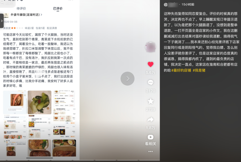 “这种失而复得如同恋爱复合。”如果说这句话是在形容“点外卖给了商家差评后,店铺创始人亲自处理、态度诚恳”的感受,你相信吗?4月7日,一位网民在社交平台上分享了自己的一段经历,得到了很多网民的点赞。