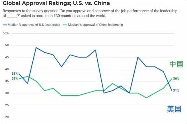 130国民调,中国认可度领先美国 美国知名民调机构盖洛普,近日发布了覆盖130多个国家和地区的全球领导力认可度调查。这一结果打破了冷战结束后美国长期垄断的全球领导力光环,是国际秩序转向多极的标志性信号。 去年中国认可度还和美国有小幅差距,今年中国认可度上升四个百分点达到36%,美国认可度骤降八个百分点落到31%,中国创下近二十年对美最大领先幅度。 美国传统盟友阵营跌幅最夸张,德国对美认可度下降39个百分点,葡萄牙下降38个百分点,加拿大英国这些长期盟友也出现大幅下滑。 民调会不会存在样本偏向?但盖洛普这项世界民意调查,是全球规模最大、持续时间最长的跨国民意调查,数据历来是观察国际舆论的核心标尺,公信力早已得到全球公认。 这次结果不是短期波动,而是全球民意转向的实锤,标志着国际力量对比已经出现实质性变化。其实这个结果早有苗头,只是没想到来得这么快。