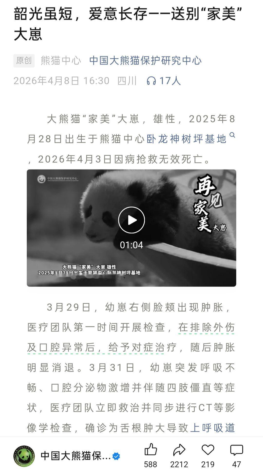 我是从25届星星产房的熊猫崽崽们入坑的,慢慢的了解到了更多的崽崽,家美大崽是第一个我熟悉的大熊猫去潘达星的崽崽,不敢相信,好难过