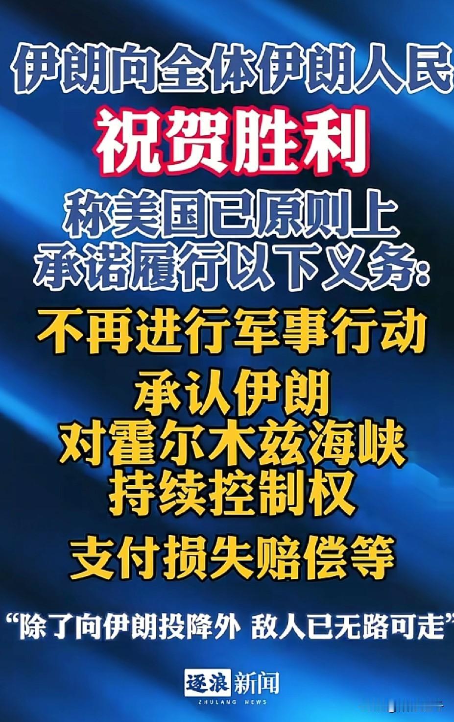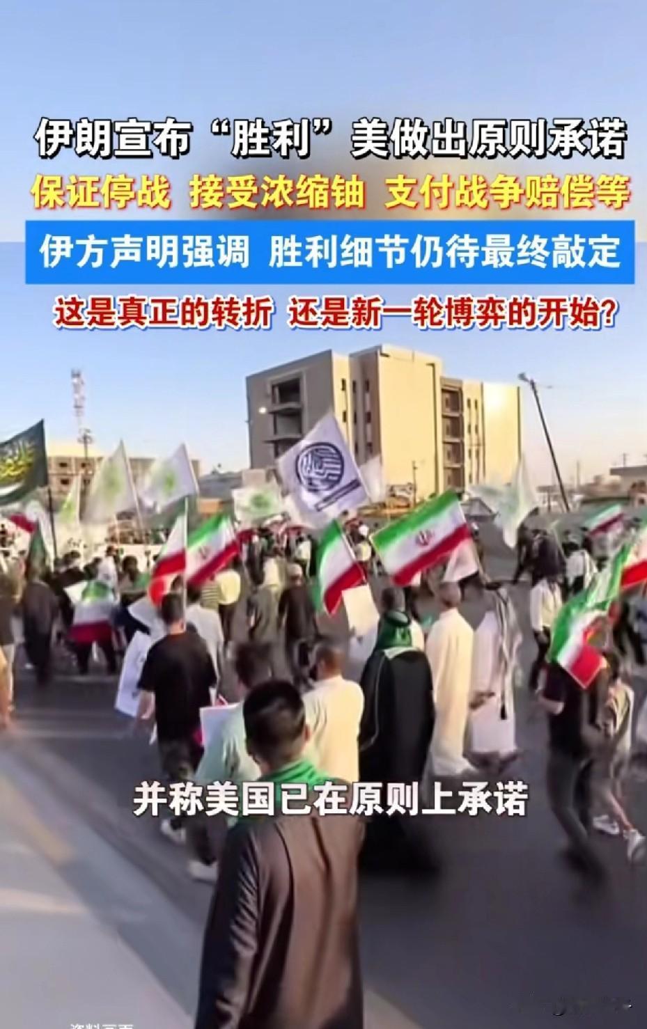 恭喜伊朗胜利! 就在刚刚,伊朗安全委员会宣布战争胜利,而特朗普也宣布了胜利,那么问题来了谁输了?难道只有内塔尼亚胡成了牺牲品吗? 4月8日,伊朗官方已向全国人民发起战争胜利的祝贺,这也代表着美伊大战可能迎来重大转机。 此外,此次伊朗也不是单方面的宣布胜利,而是提的停火条件都被美国认可了。也就是说美国已经同意了,停止军事行动、承认伊朗对霍尔木兹海峡控制权、解除制裁、撤军赔偿等。等于说双方打了这么多天,美国打了个寂寞,自己不但损失惨重,还什么也没有得到呀! 此消息宣布后,最开心的当属伊朗民众了,他们上街庆祝欢呼,载歌载舞,为国家骄傲,为自己身为伊朗人民而骄傲。 伊朗主播们更是激动到语无伦次,直言美国已将伊朗视为超级大国,伊朗在国际上将拥有更大的话语权。 但话又说回来美国的话真的能信吗?特朗普一向都以“出尔反尔”著称,会不会是缓兵之计呢?伊朗战况