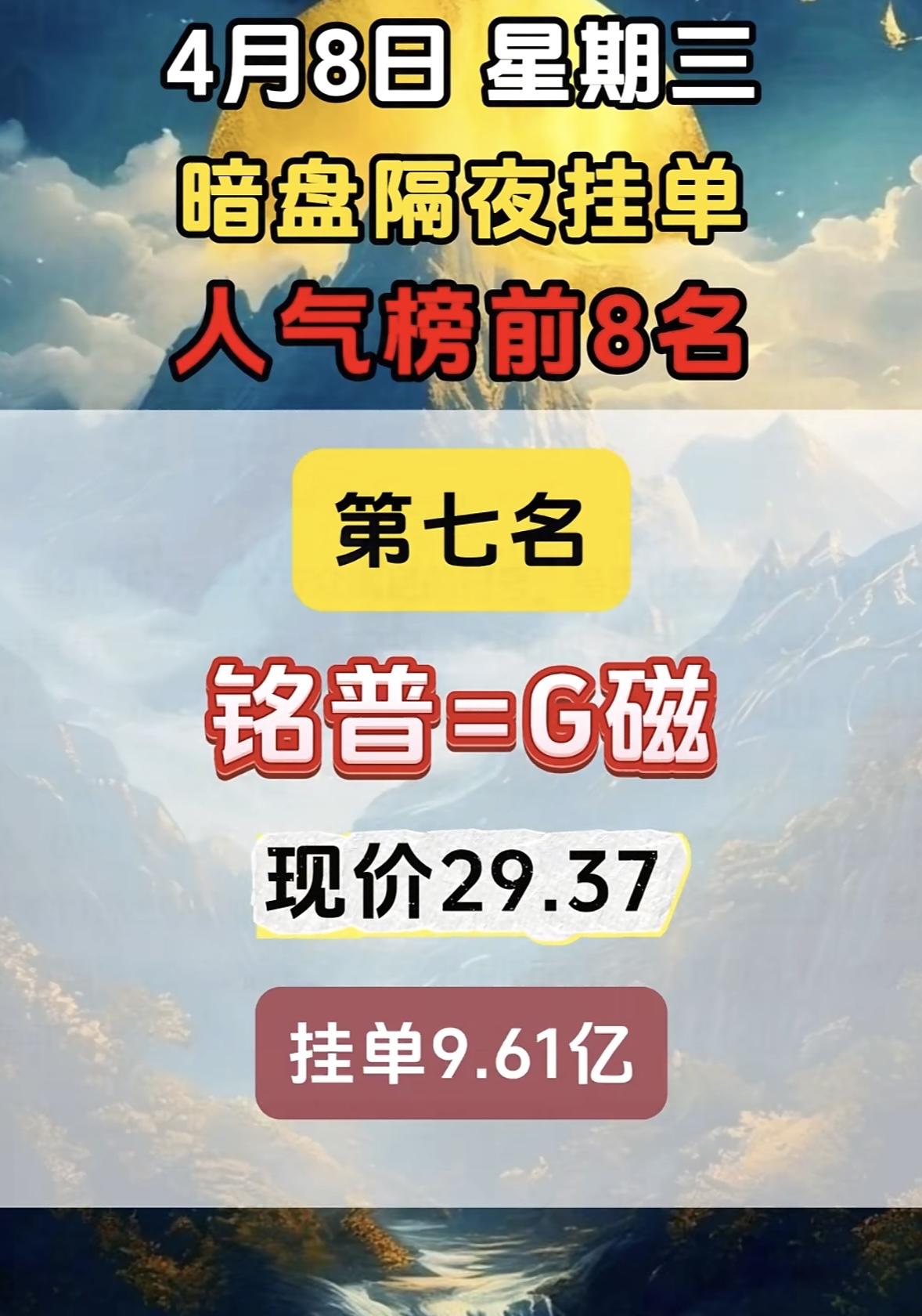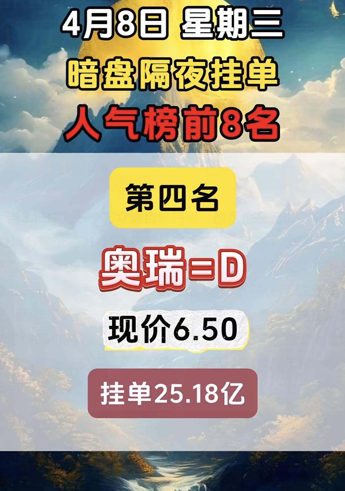 4月9日周四暗盘榜前七名揭晓。 这可太让人关注了!暗盘交易就像是股票市场里的“神秘角落”,充满了各种机会和风险。 这前七名里,说不定藏着未来的潜力股。有的公司可能凭借独特的业务模式脱颖而出,吸引了众多投资者的目光;而有的也许是有重大利好消息,在暗盘就提前有了反应。 不过,暗盘交易也不是稳赚不赔的。它的波动可能比正常交易更剧烈,一不小心就可能被“割韭菜”。对于投资者来说,这既是挑战,也是机遇。大家可得擦亮眼睛,好好研究研究这前七名,说不定能抓住下一个财富密码呢!