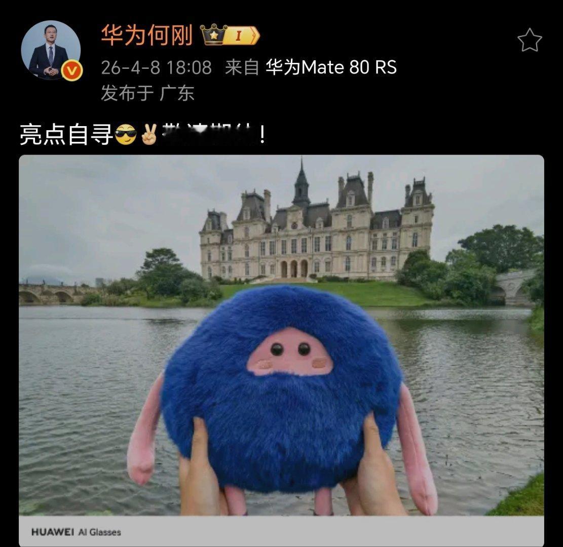 咦,何总这图里确实有亮点啊。水印是来自AI Glasses。这个效果还可以,意思是华为将发布AI眼镜。