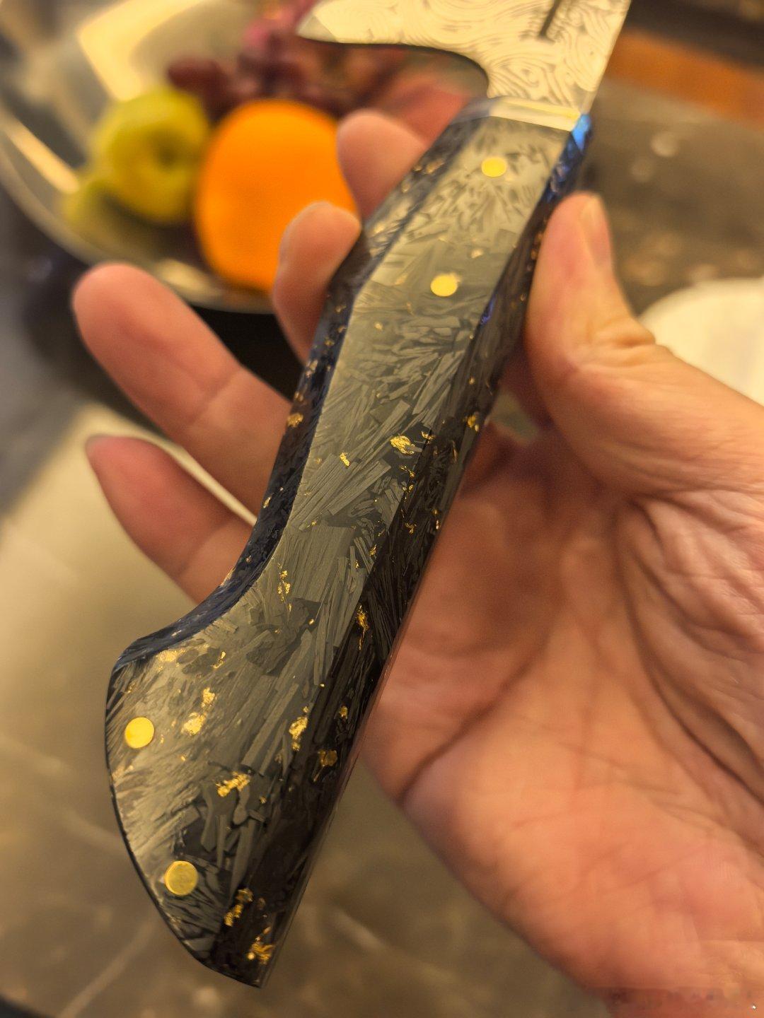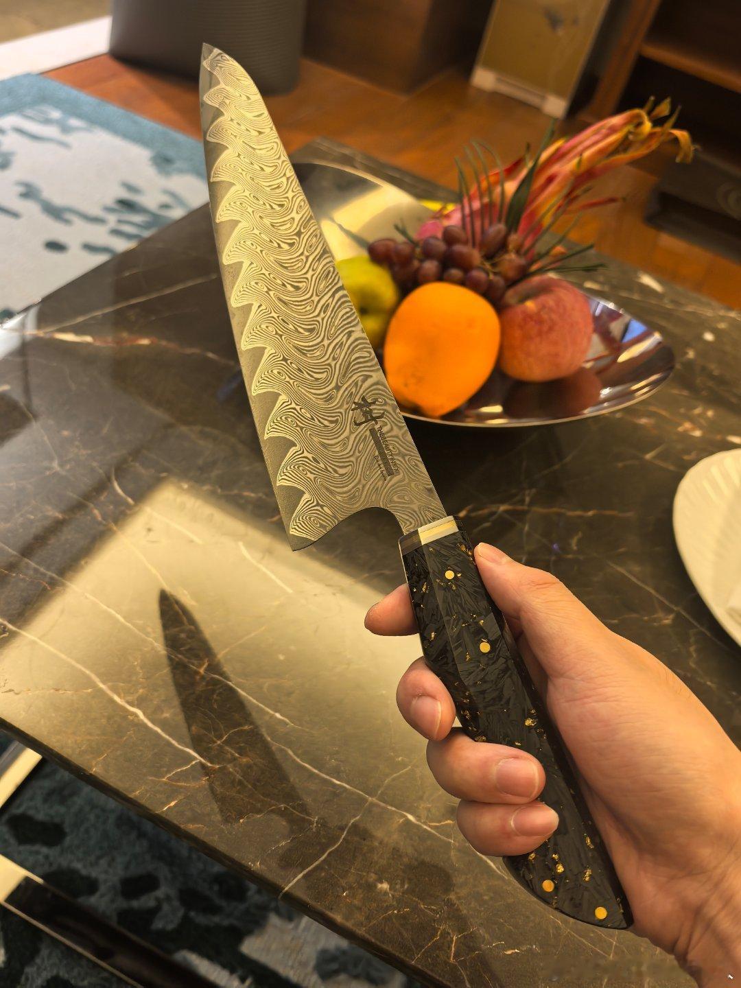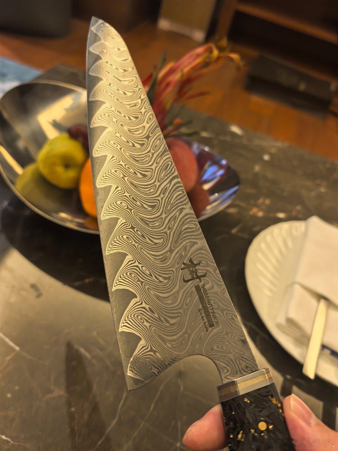 新的牛刀样品也做好了明天或者后天上架,还可以的一款这次是三件套,等会再拍下水果刀给你们