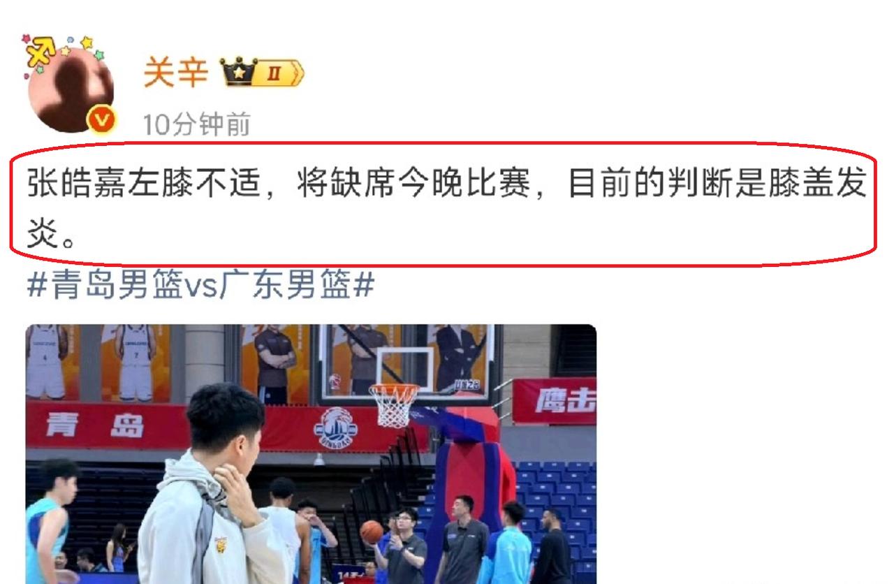 雪上加霜,广东队又一锋线悍将受伤! 上一场输给山东队之后,广东队的排名直线下滑,直接来到了第六名,如今,又要面对青岛队的冲击,可以说,如果广东队再输给青岛队,那么,第六名也可能保不住,就更别谈四强,别谈争夺CBA总冠军了。 那么,广东队为何会输给山东队呢?原因也是十分简单,那就是球队主力球员,出现了大面积伤病,球队唯一的中锋焦泊乔,因为伤病+家庭因素,在前段时间,就向广东队请假,什么时候,能够复出,还是一个未知数。 外援萨林杰、萨姆纳两人,同样是因为伤病,无缘比赛,根据了解,他们将会缺席两周左右的比赛,也就是说,在接下来的比赛,广东队只有两个外援参加比赛。这样的情况,对于广东队而言,打击是十分大的。 然而,在刚刚,又传出了一则坏消息,没错,那就是广东队又有一名球员受伤了,他就是广东队的锋线悍将张浩嘉! 根据广东队随队记者关辛表示,张浩嘉因为左膝受伤,将会无缘与青岛队的比赛,根据了解,张浩嘉的膝盖出现了发炎,而且,还是比较严重。在赛前,张浩嘉也是没有参加训练,只是来到场边,给队友捡球。 众所周知,广东队内线球员,本身就不足,如今,张浩嘉又遭到了伤病,无缘比赛,对于球队而言,无疑就是雪上加霜,十分遗憾。 近段时间,张浩嘉的表现,可圈可点,不管是在进攻端,还是在防守端,都是打出了自己的水平,打出了自己的风采,成为了广东队最稳定的锋线球员。由于张浩嘉表现不错,杜锋也是离不开张浩嘉一样,连续多场比赛,张浩嘉的出场时间,都是超过了30分钟,成为了球队真的大腿! 如今,张浩嘉意外受伤,也是让杜锋感到十分沮丧,感到十分遗憾! 现阶段,广东队正处于向好成绩冲刺,球队却不断出现伤病,显然,杜锋如何调配好球员,帮助球员发挥高水平,将直接影响广东队走向。 在此,也是祝愿广东队好运吧!