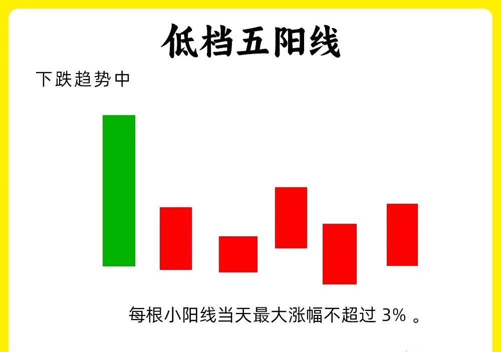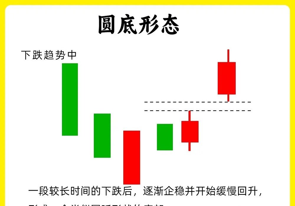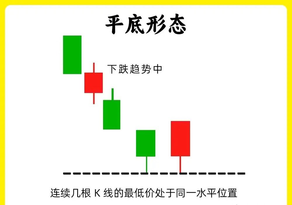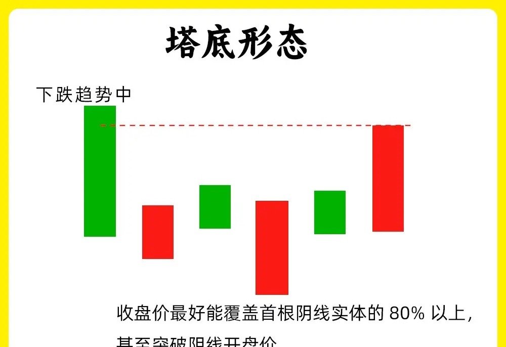 注意了!散户判断真假底部,一直是最为薄弱的一个环节。而我一旦看到这八个形态,我一定要认真的关注起来。这八个形态最为经典,股价盘整阶段往往都会出现。建议认真看完这期内容还是老规矩,点赞收藏或评论六六六支持一下,每天分享炒股干货,以免以后想温习找不到了1. 低位并排阳股价在下跌趋势的末期,先是一根中大阴线,随后出现连续两根向下跳空缺口,两根阳线的开盘价和收盘价,基本相同,说明此时的市场有分歧,跳空下跌,最后反而收阳。说明抛压变弱,低位承接力量变强。2. 低档五阳线股价长期下跌以后,首先出现一根中大阴线,随后股价没有继续下跌,而是连续出现五天连阳,甚至更多,虽然都是小阳线,说明市场抛压开始变弱,往往是主力开始吸筹。3. 圆底形态股价长期下跌的过程里,股价先是下跌的阴线,随后股价开始低位横盘,振幅比较小,这是一个市场磨底的过程,主力慢慢洗盘,吸筹,随后成交量逐步放大,股价缓慢上涨,就行圆形的底部形态,也是大级别的底部形态4. 塔底形态也是第一个下跌,盘整,反弹向上的一个过程,首先是出现大阴线,随后出现小阴线小阳线,股价开始不继续走出新低,随后再次出现放量阳线。他的走势会比圆底形态更干脆,更稳健一些5. 连续跳空三阴线股价出现连续的跳空低开的三根阴线,市场上有一句俗语,“一鼓作气,再而衰,三而竭”。连续的三天缺口。6. 平底形态股价处于下跌趋势末期,股价下跌过程里,出现两根K线,他们的最低价基本相同,出现一个同个价格附近,说明下方有比较强势支撑力量。如果此时阳线还能出现放量,那就更好7. 红三兵这个形态大家都熟悉,股价出现连续三天阳线,股价在不断抬高,说明买盘力量开始变强。这种形态,影线部分一般都不会很大。8. 冉冉上升形股价在下跌趋势的末期或是底部横盘阶段,出现八根以上的小阳线,其中可能会出现小阴线或是十字星,但是,他们底部重心,在不断的抬高,形成趋势小幅度向上。这一般是主力的吸筹建仓了。一般这种底部形态时间会比较长