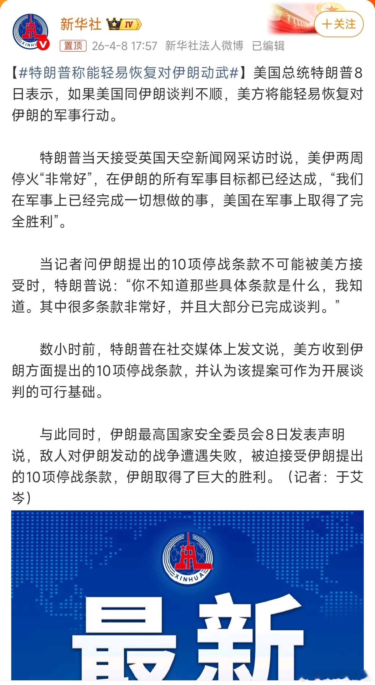 特朗普称能轻易恢复对伊朗动武又要随时撕毁协定?老美好像越来越无耻了但还是希望能谈出一个双方都能接受的方案,希望世界和平一起赚钱