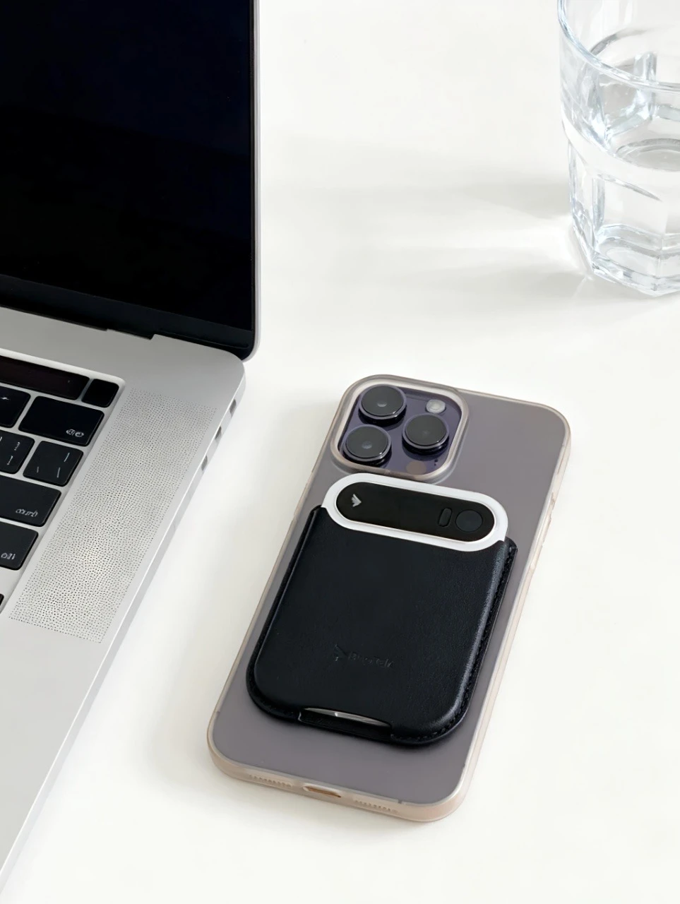 它长得跟信用卡没差,3.8mm薄得比手机壳还轻,40多克揣口袋里基本没感觉,套个皮质磁吸套贴在手机背面。