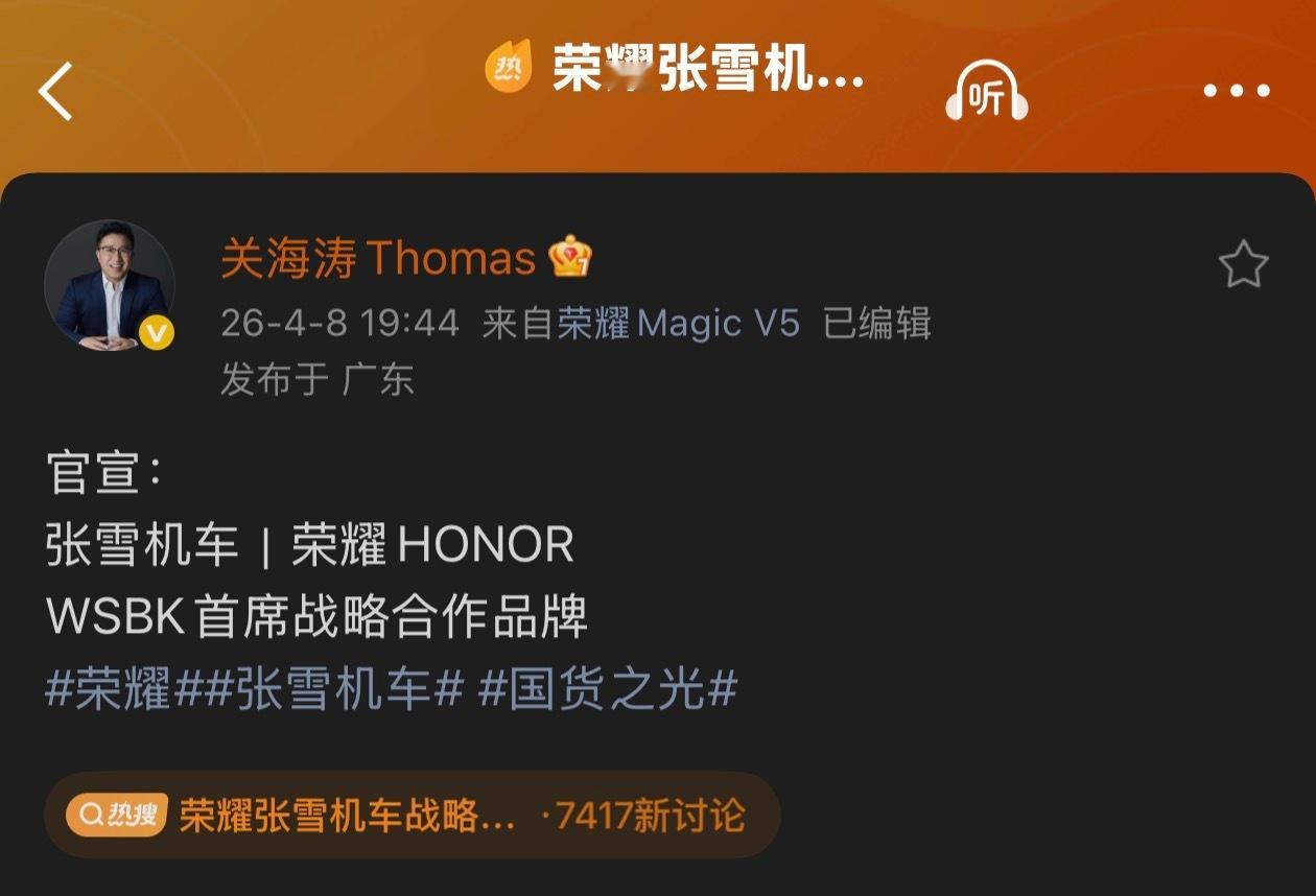 荣耀张雪机车战略合作 没想到吧,最后是荣耀拿下了张雪!牛掰!