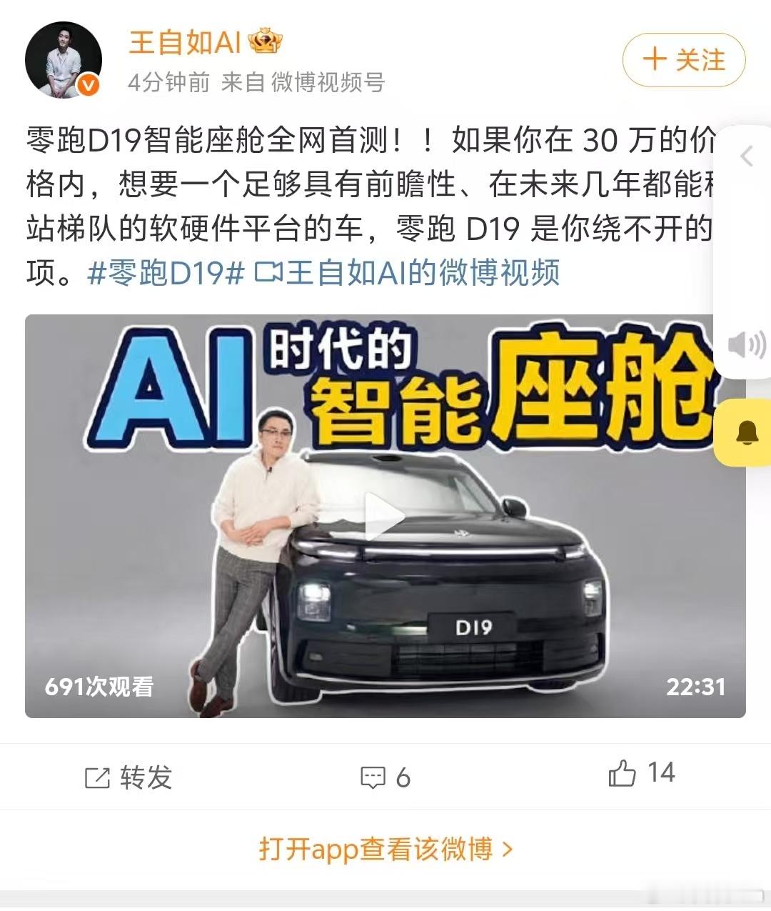 王自如终究还是进入车圈了第一辆车就是零跑D19不过还是结合了部分Ai功能