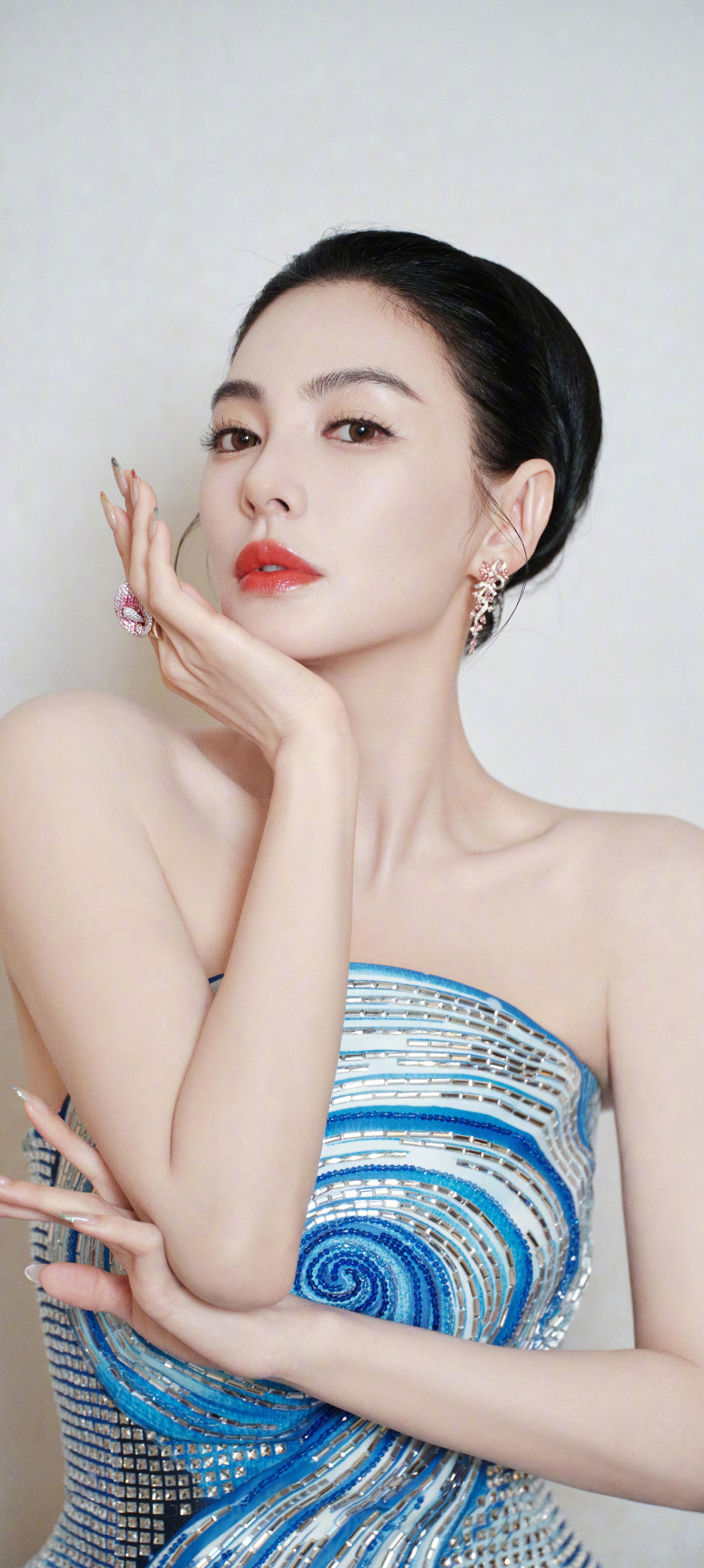 张雨绮今日穿搭壁纸:抹胸蓝裙,温婉灵动。张雨绮