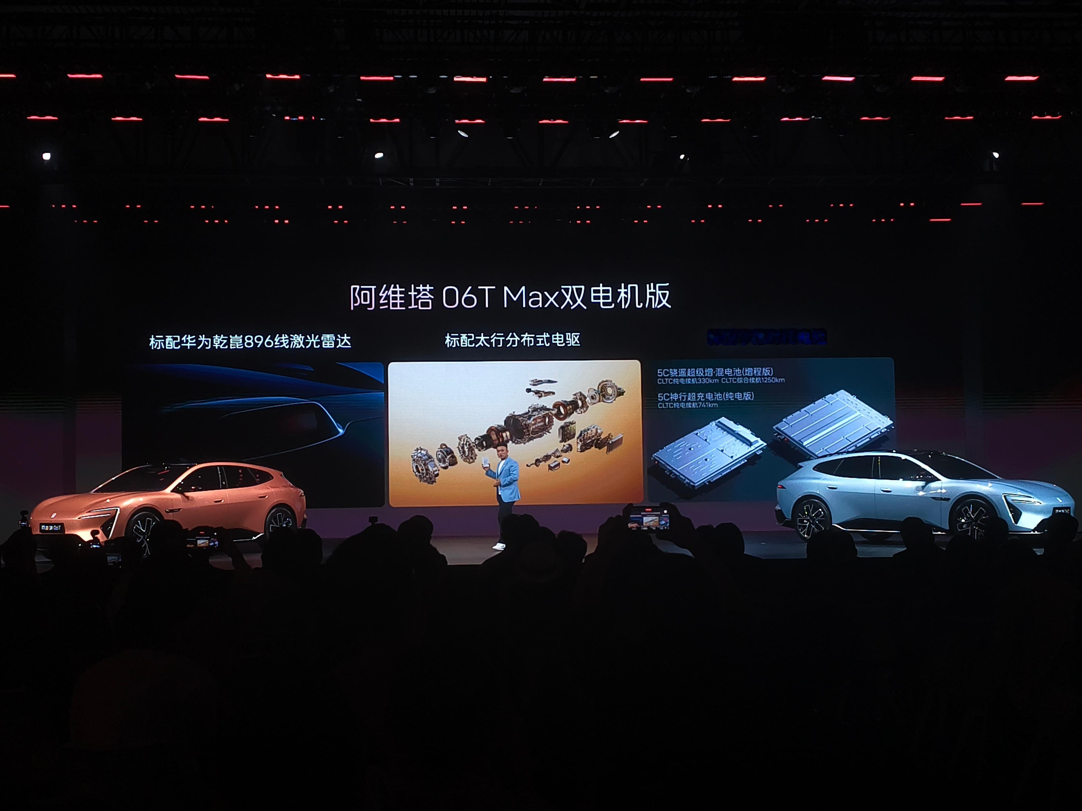 阿维塔06T Elite、Max、Performance三大版型,价格22.99万-27.99万元,同样有华为全家桶,而且入门版还是舱内激光视觉Limera,电池还是宁德神行,纯电续航652公里,也有最新的分布式电驱,性价比会更加高。