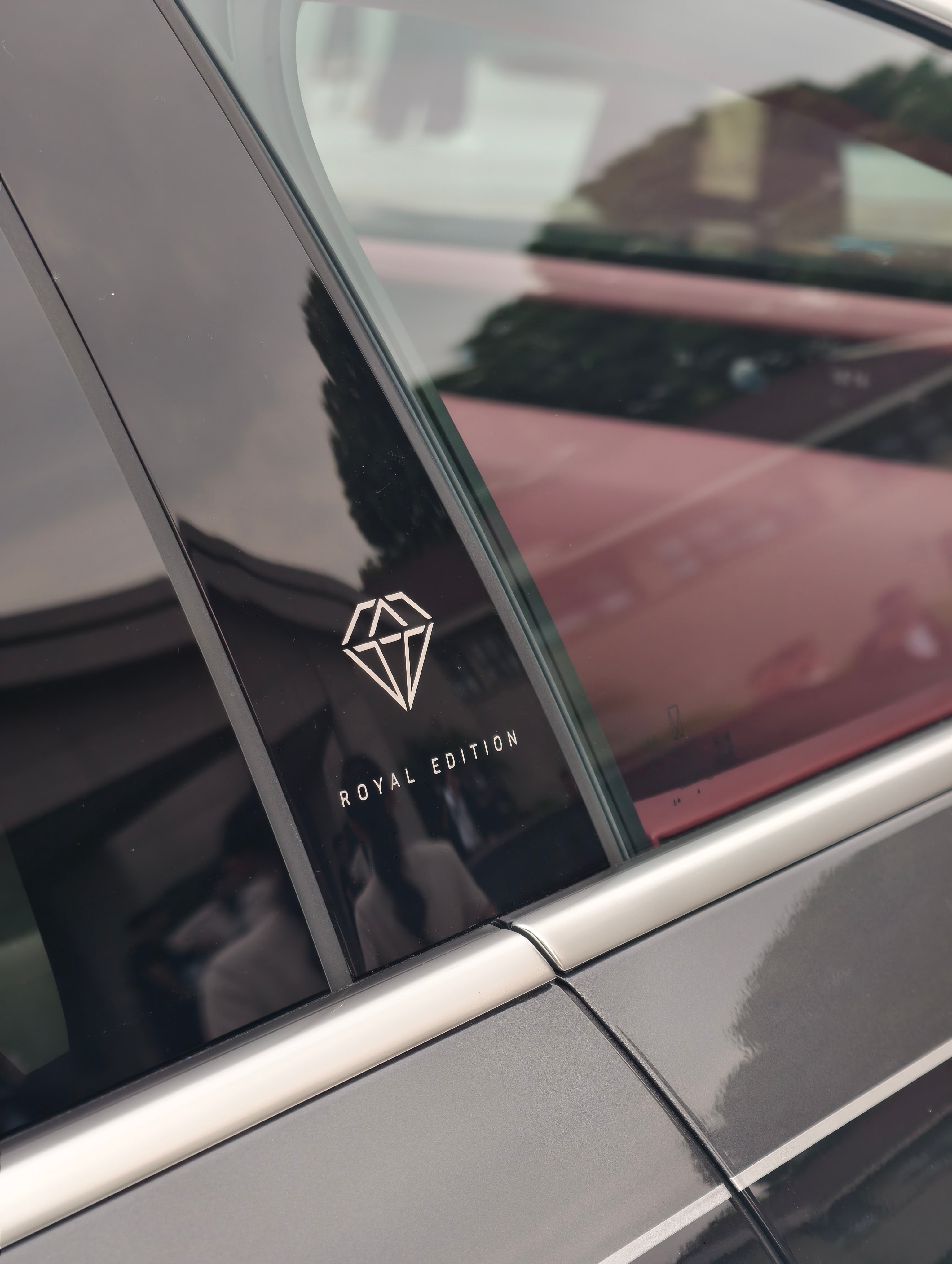 抬头看到新阿维塔12 的皇家剧院版本,这条手绘的腰线作用很大。汽车要做到很漂亮的车身姿态,平直的腰线是主流做法,一方面拉长了视觉延长点,另一方面光线充足下曲面会很显雕塑感。