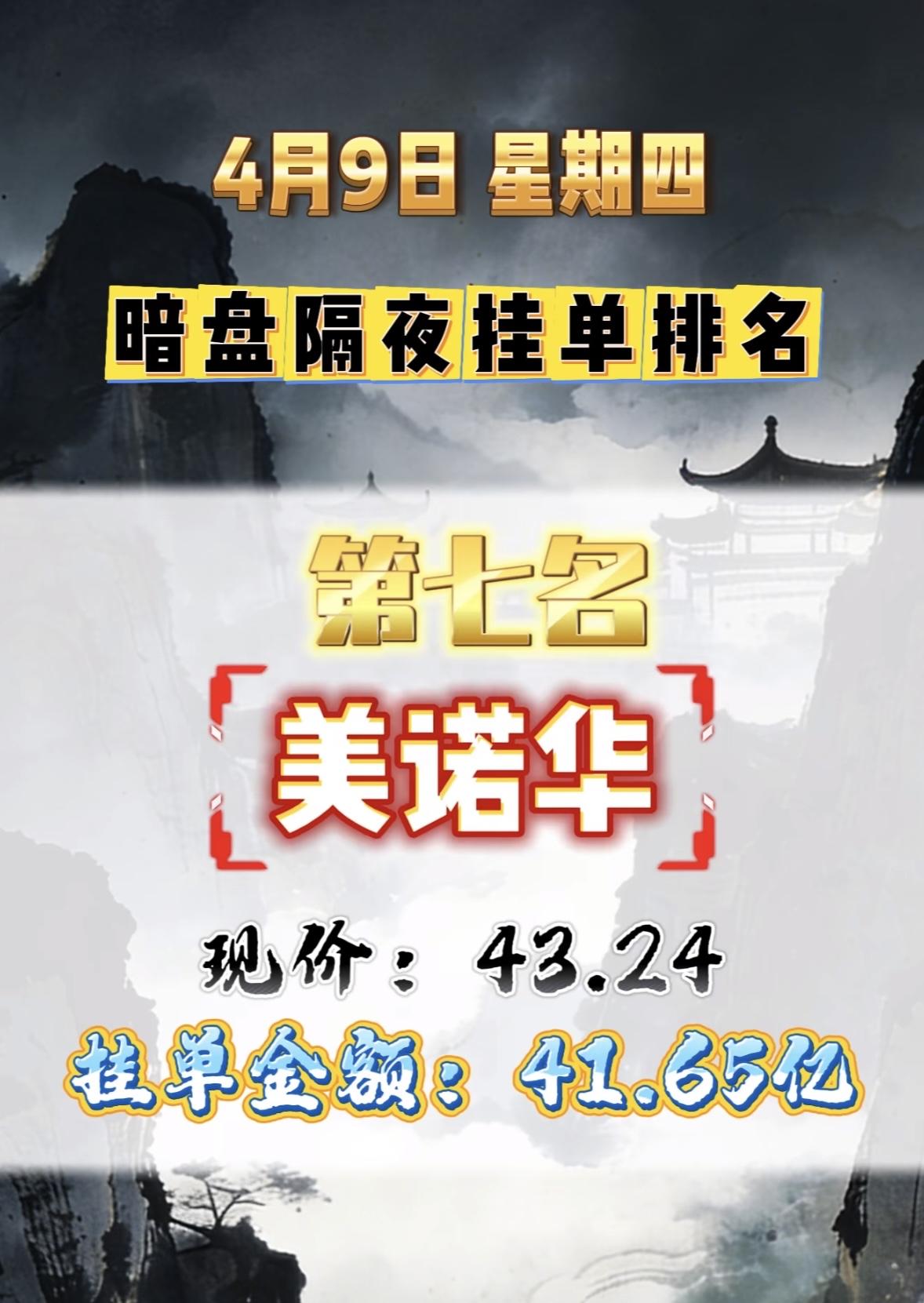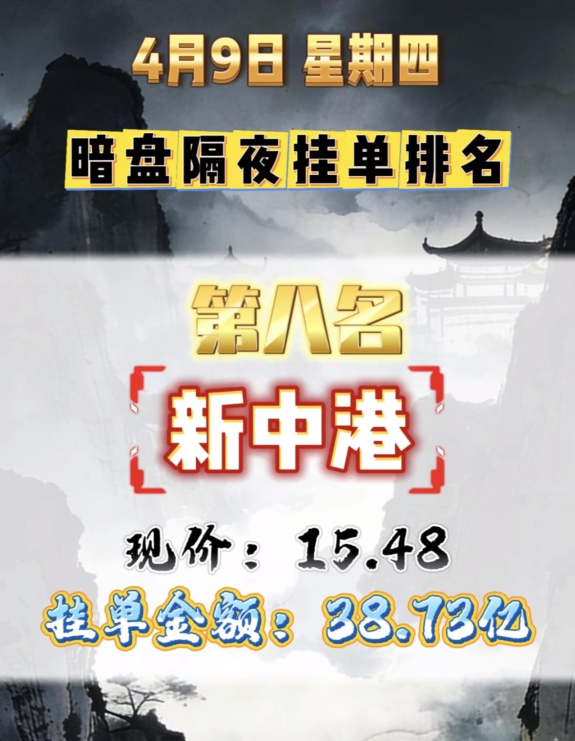4月9日周四暗盘隔夜挂单排行榜揭晓 4月9日新中港暗盘隔夜挂单排名第八,现价15.48,挂单金额38.73亿,这数据够亮眼啊。想想4月3日,早盘它封死涨停冲顶15.46元,可9点31分炸板后,就像被抽走了所有热气,直坠跌停,尾盘收12.79元。当时涨停板上那叫一个亮,结果转瞬即逝,分时线像被拔掉支撑柱。全天换手16.28%,9.2亿成交量砸下来。高盛等外资在其中的操作也引人猜测。如今新中港暗盘有这样的表现,后续走向会如何呢?是触底反弹还是继续震荡,真让人期待又忐忑。