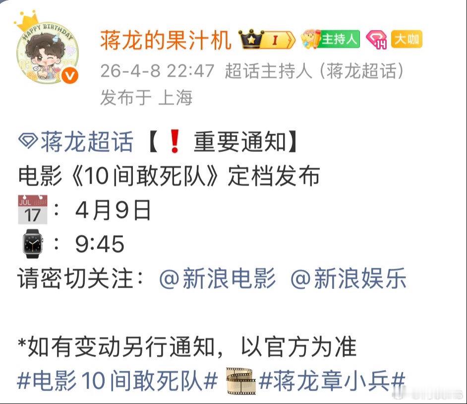 电影《10间敢死队》明天定档,五一上映陈思诚导演,蒋龙、齐溪、杨超越、王子川、张